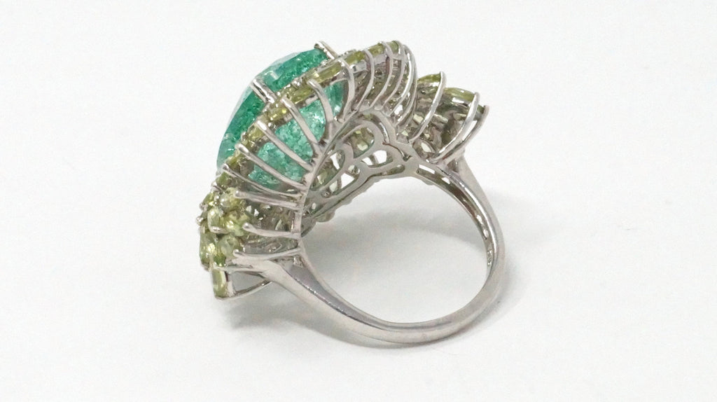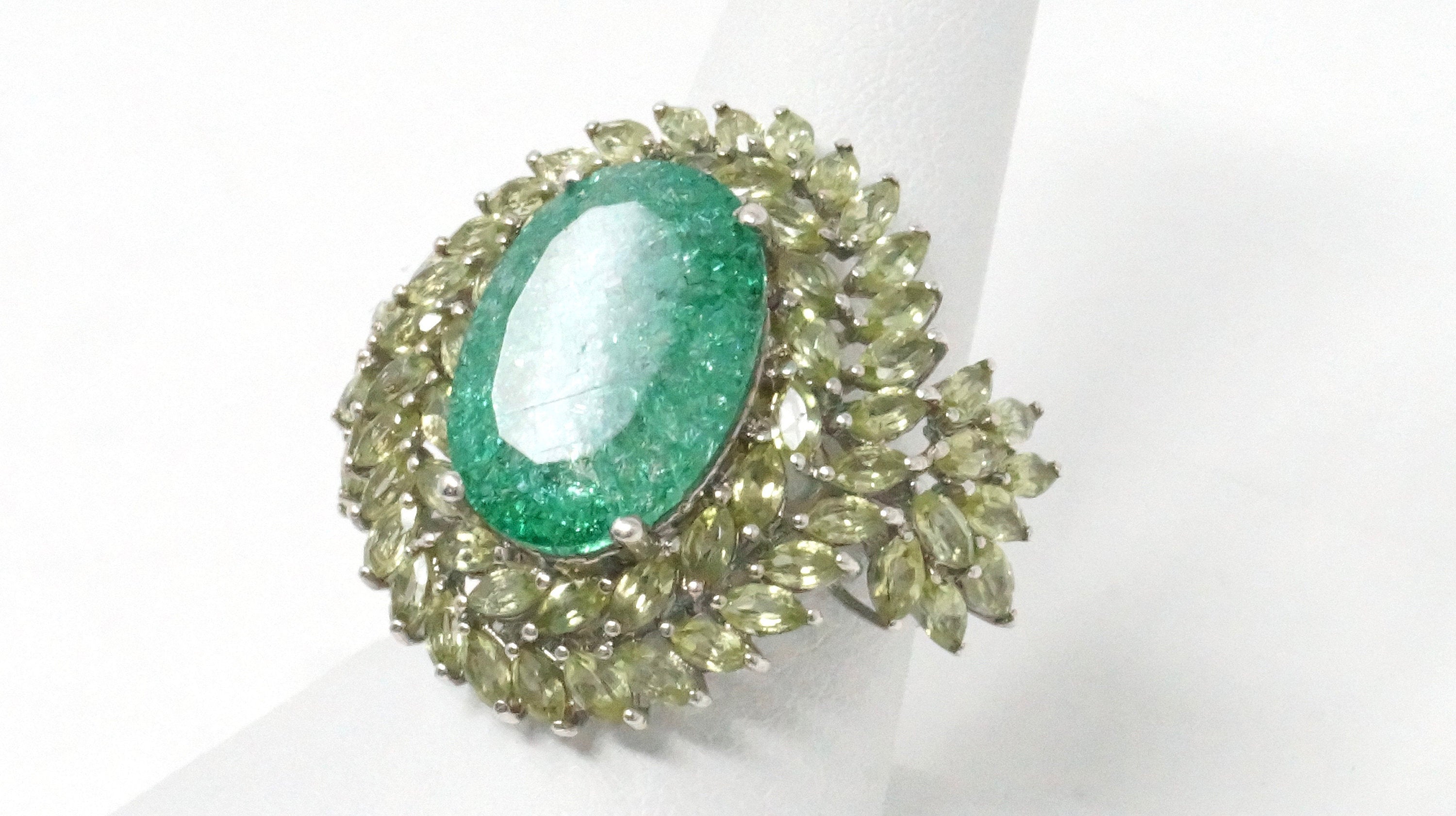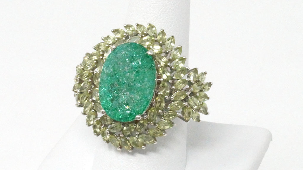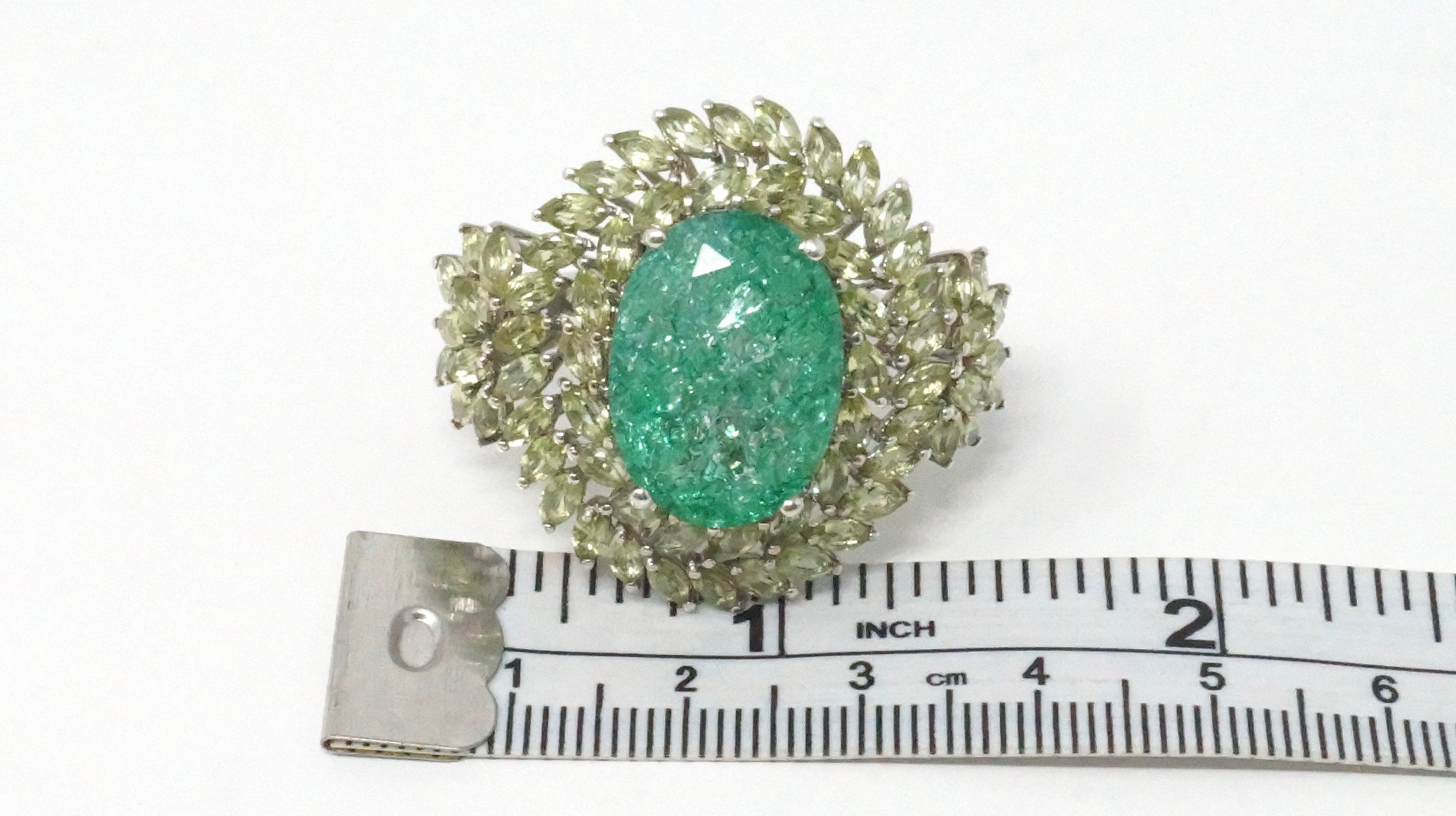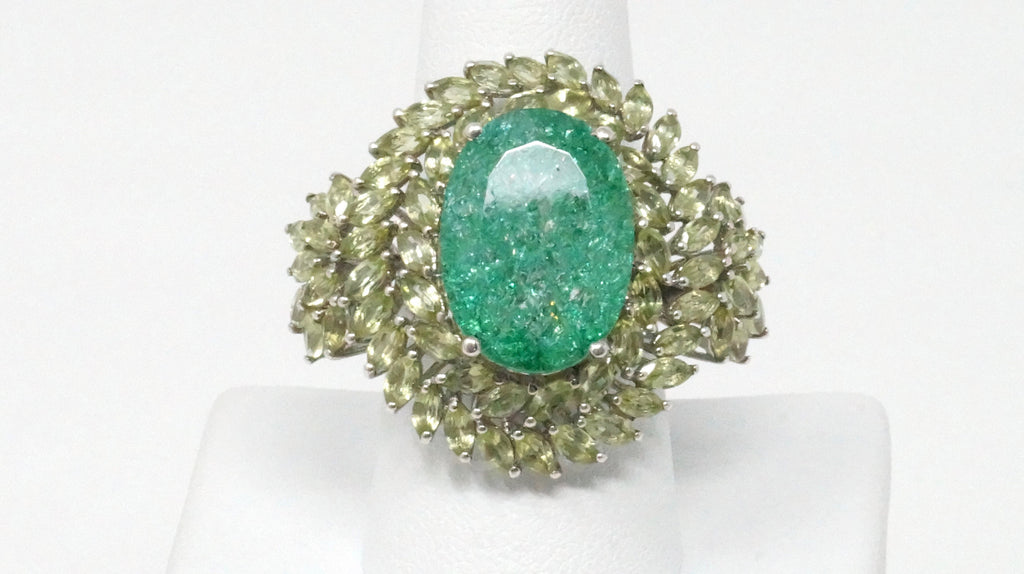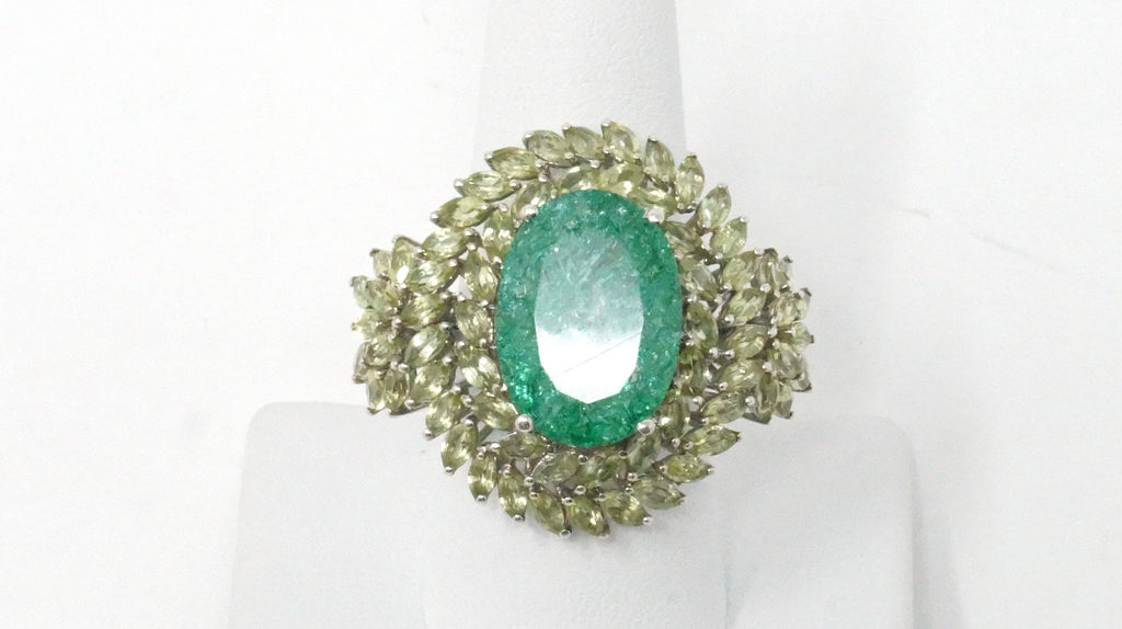 Vintage Emerald and Cubic Zirconia Sterling Silver Statement Ring - Size 9