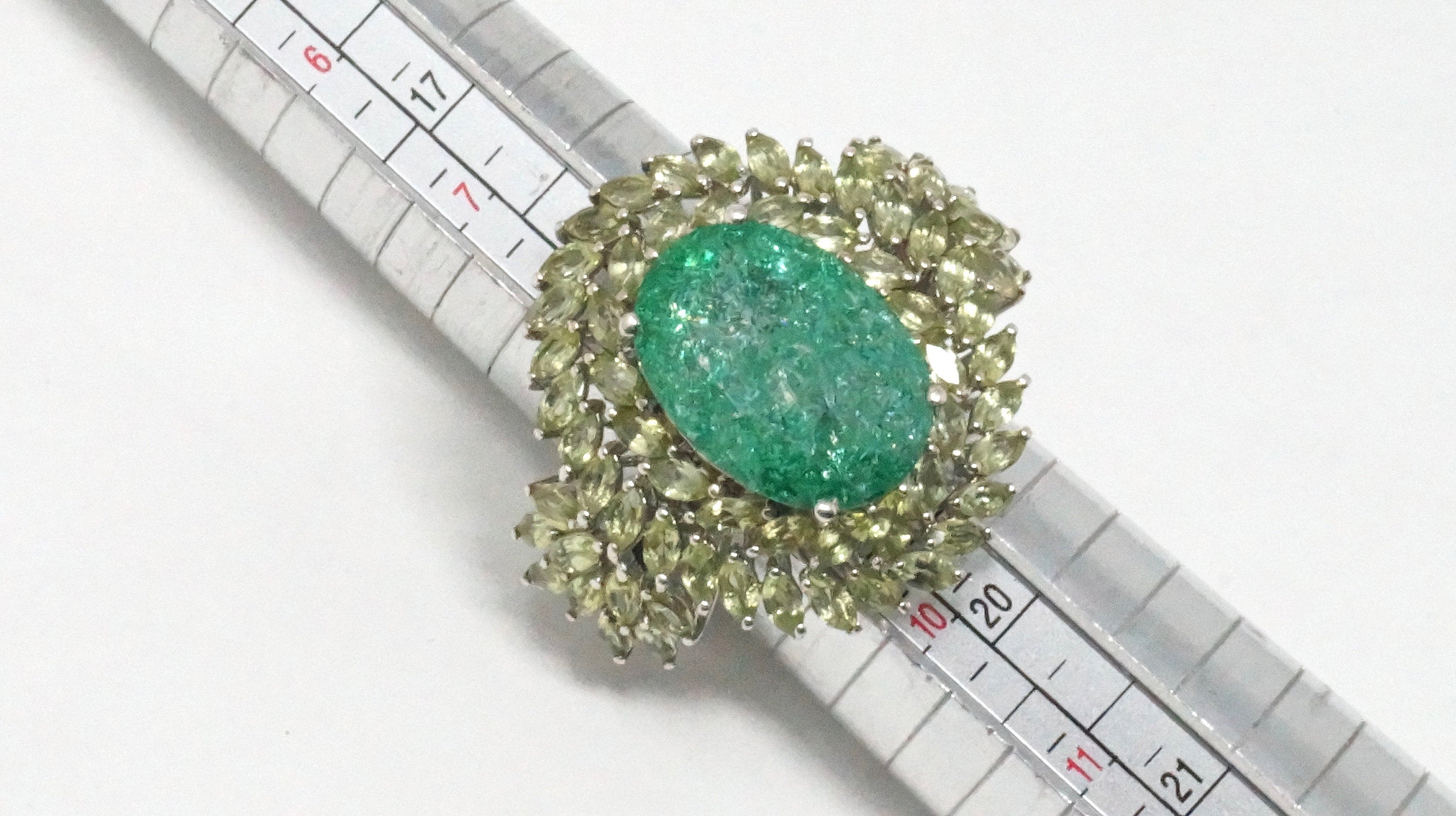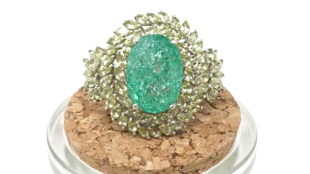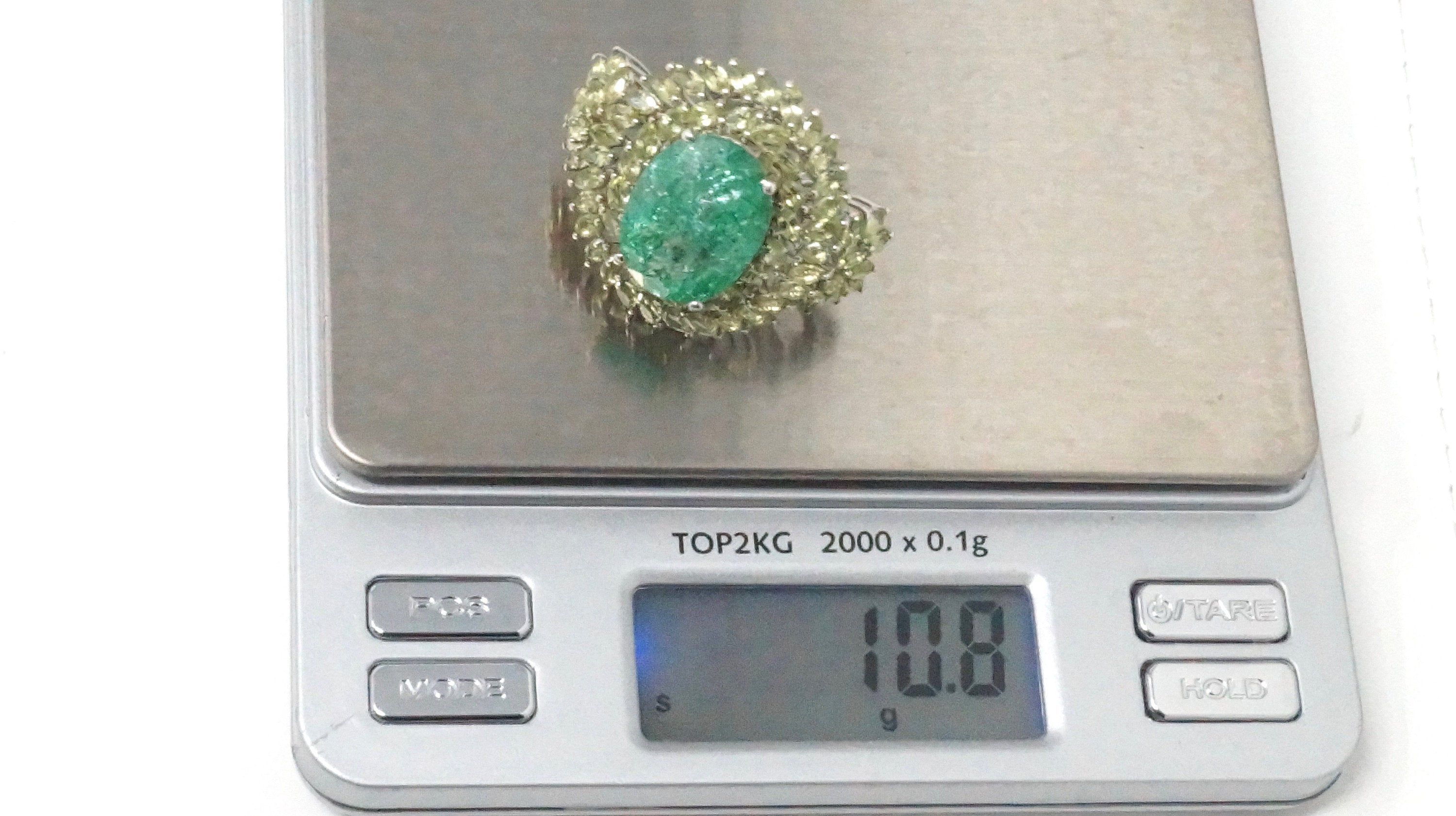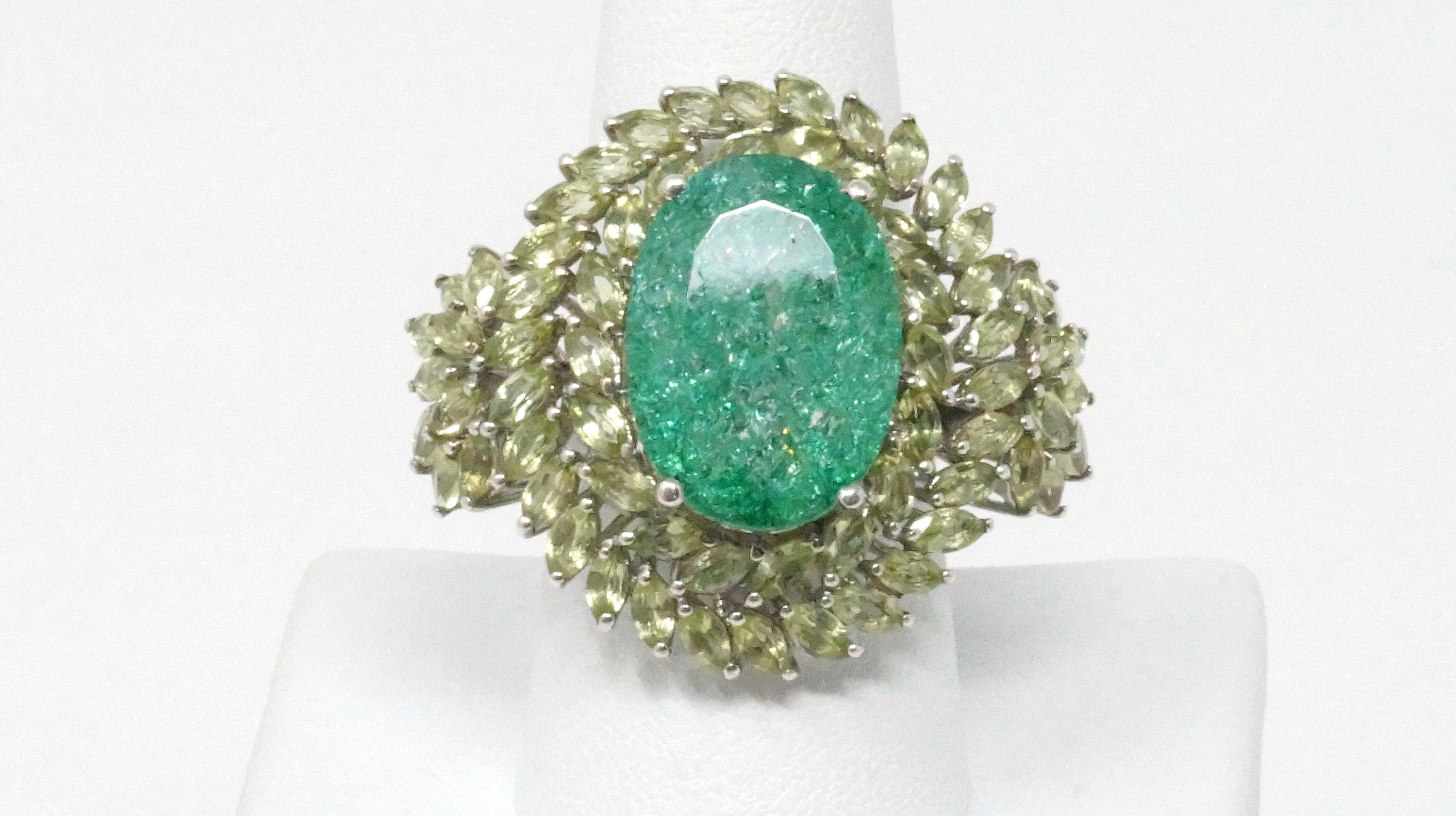 Vintage Emerald and Cubic Zirconia Sterling Silver Statement Ring - Size 9