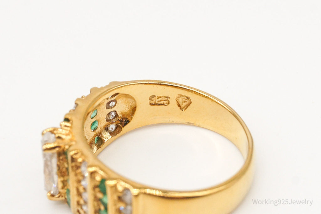 Vintage Emerald Cubic Zirconia Gold Vermeil Sterling Silver Ring Size 8.75