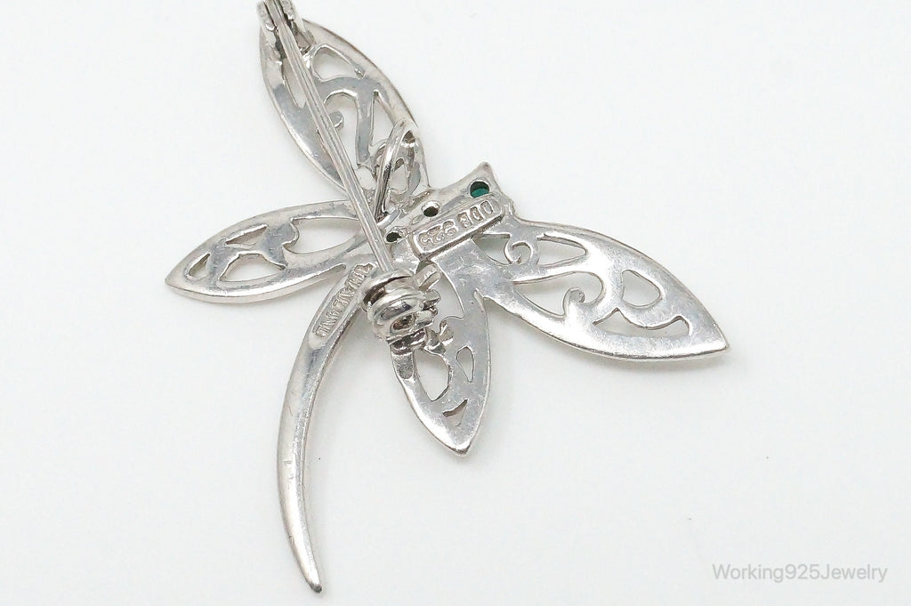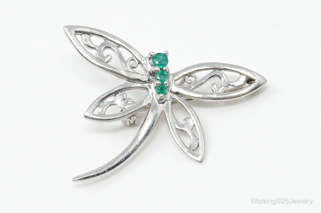 Vintage Emerald Dragonfly Sterling Silver Pin Brooch Necklace Pendant