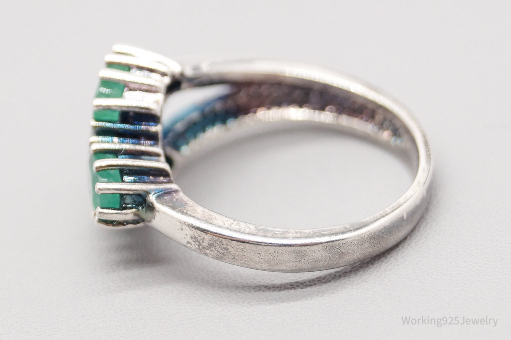 Vintage Emerald Sterling Silver Ring - Size 6.75