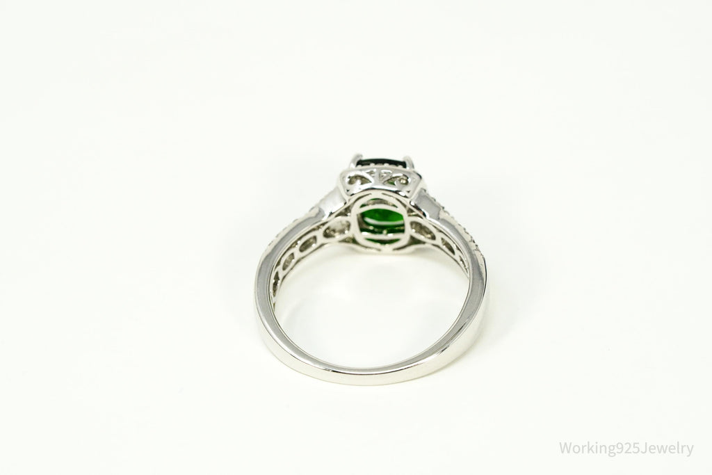 Vintage Emerald & White Topaz Sterling Silver Ring - Size 9.75
