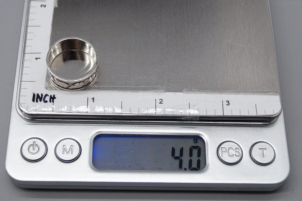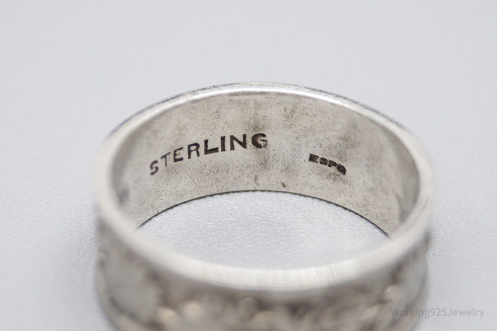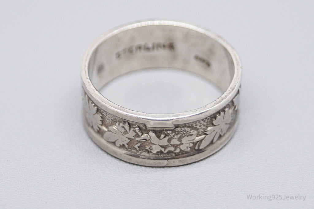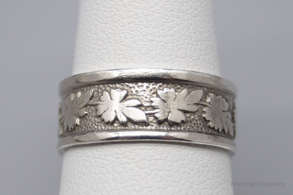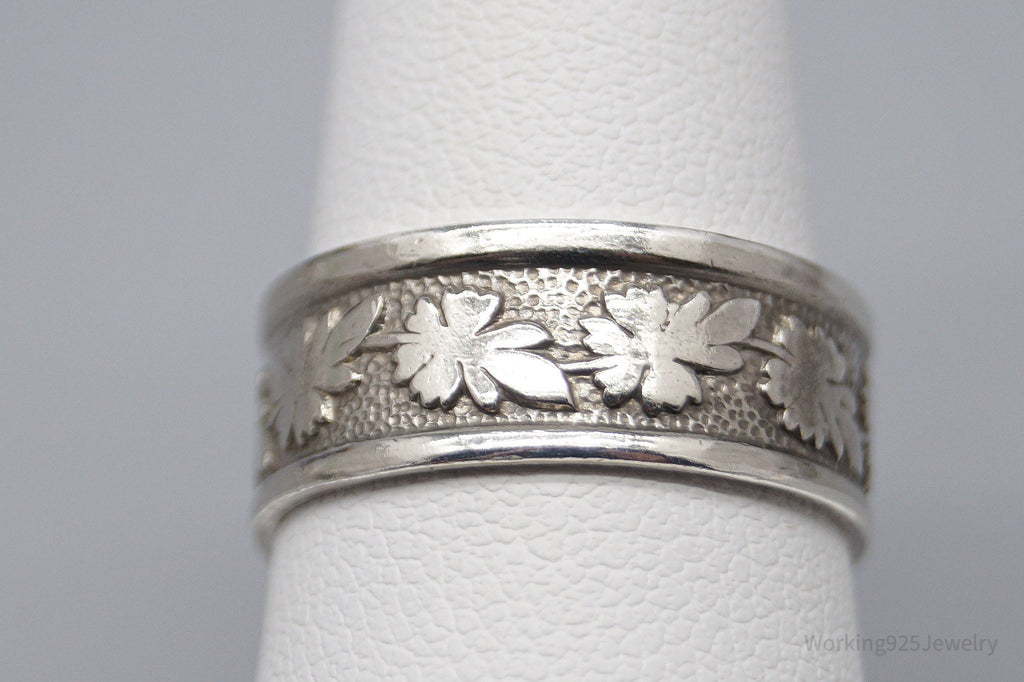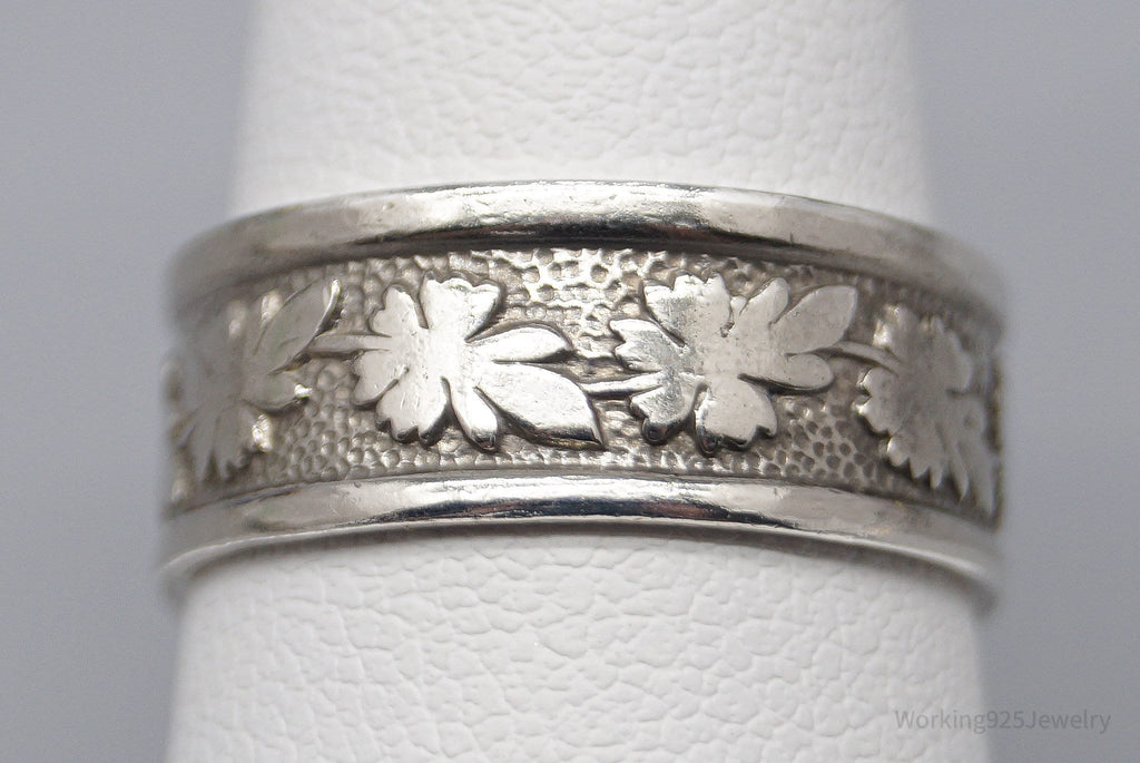 Vintage ESPO Leaves Pattern Sterling Silver Band Ring - Size 7.25