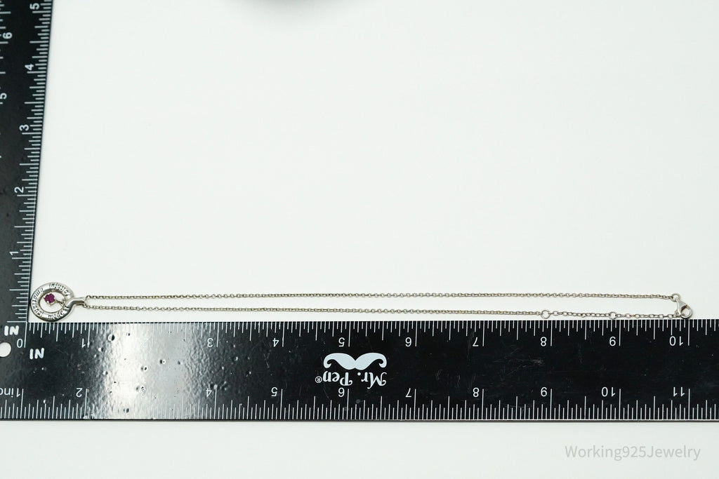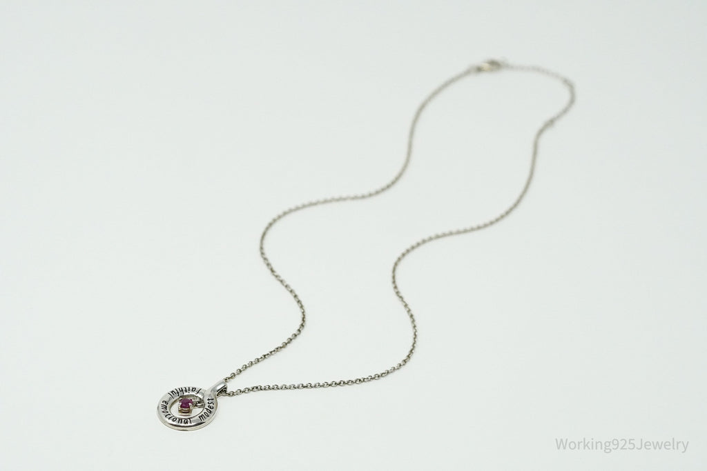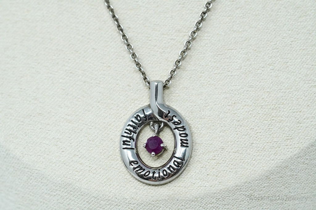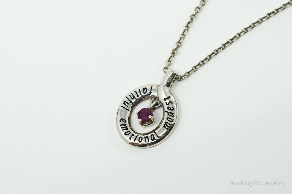Vintage "Faithful Emotional Modest" Ruby Sterling Silver Necklace 18"