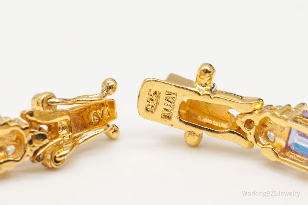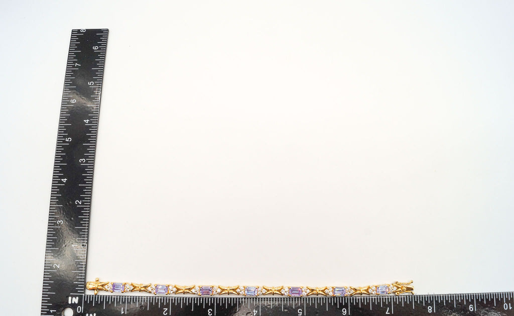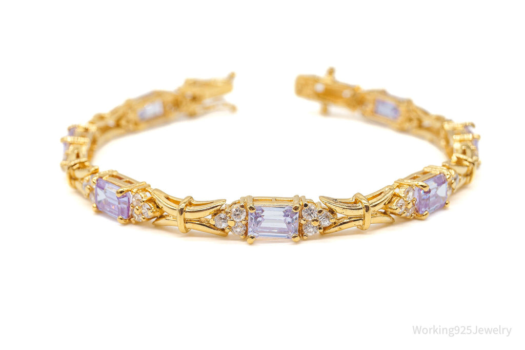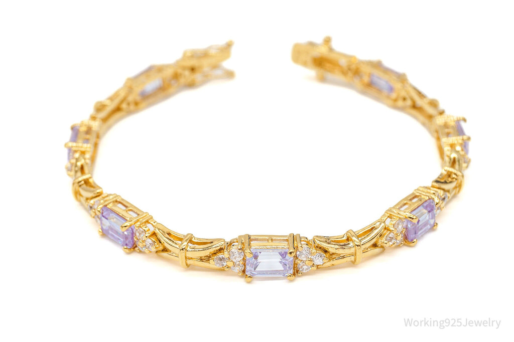 Vintage FAS Purple & White Cubic Zirconia Gold Vermeil Sterling Silver Bracelet