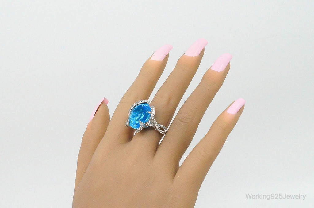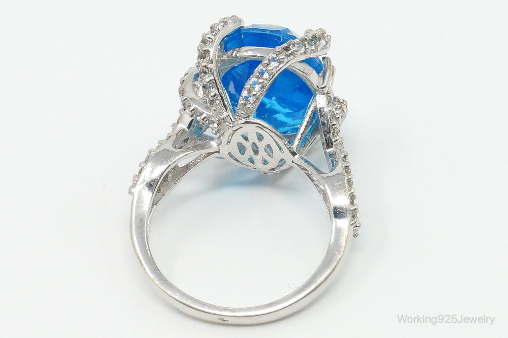 Vintage Faux Blue Topaz Cubic Zirconia Sterling Silver Ring - Size 10.25