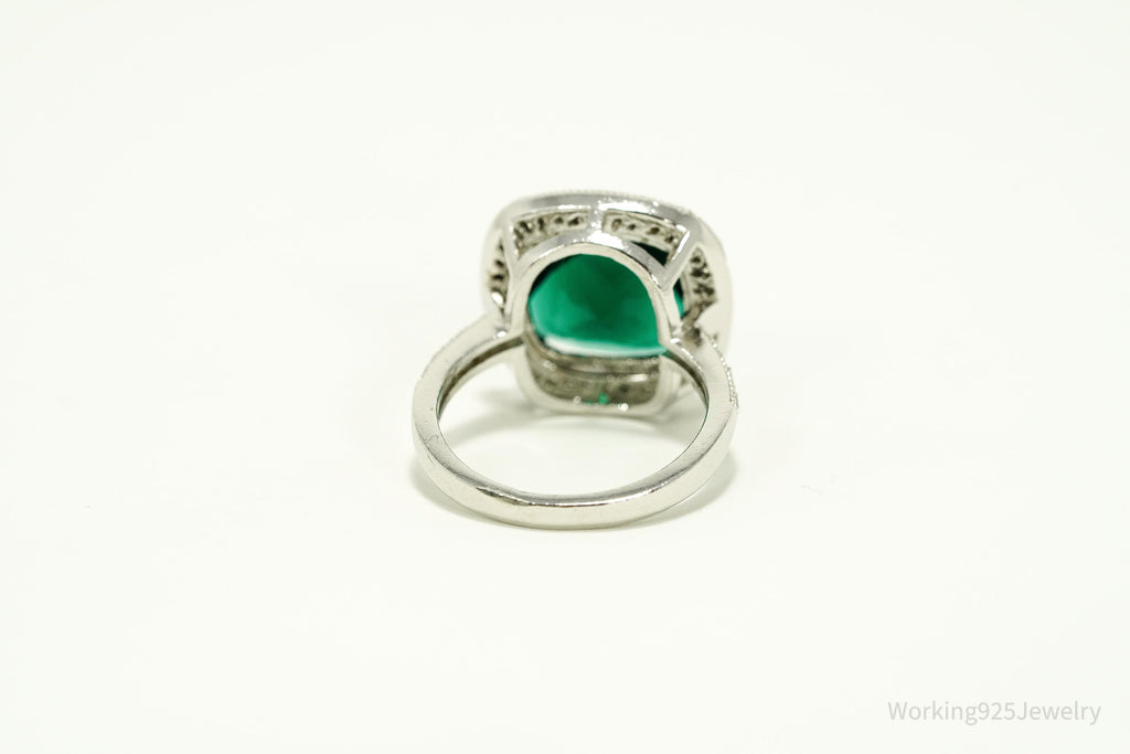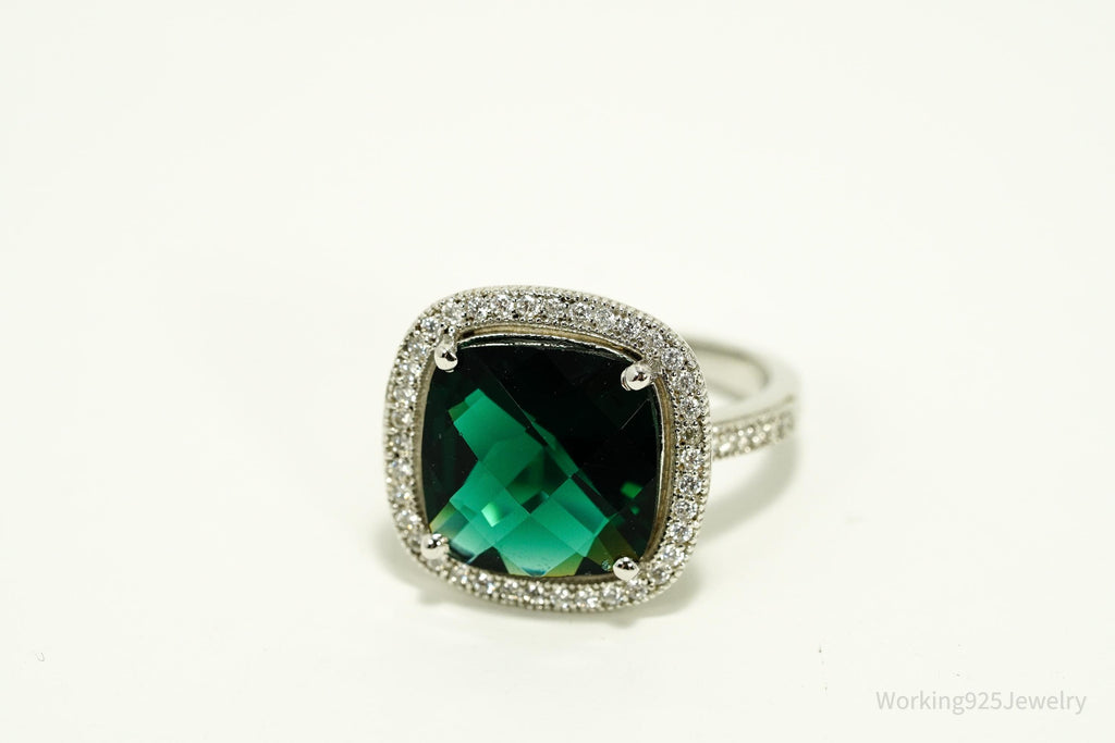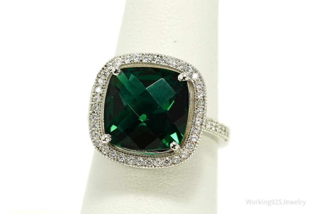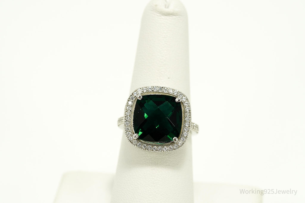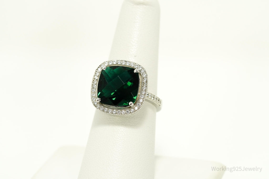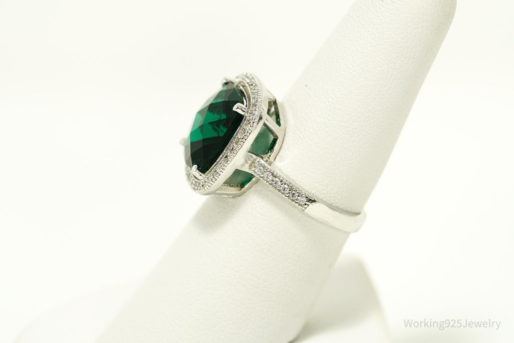 Vintage Faux Emerald & Cubic Zirconia Sterling Silver Ring - Size 7