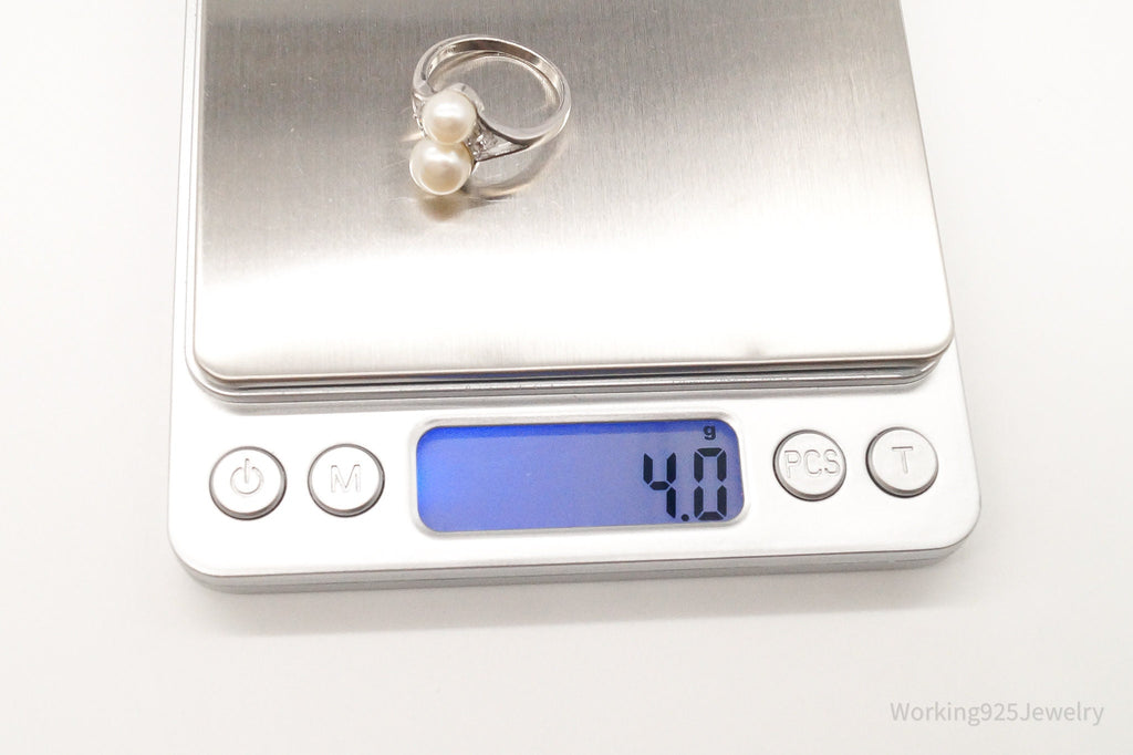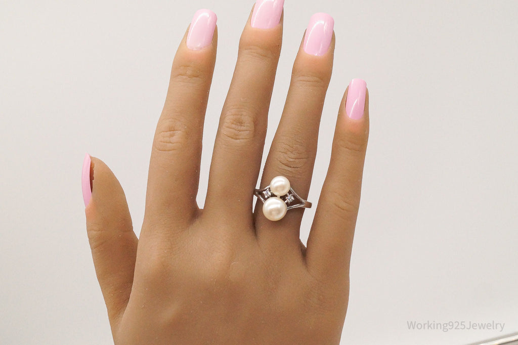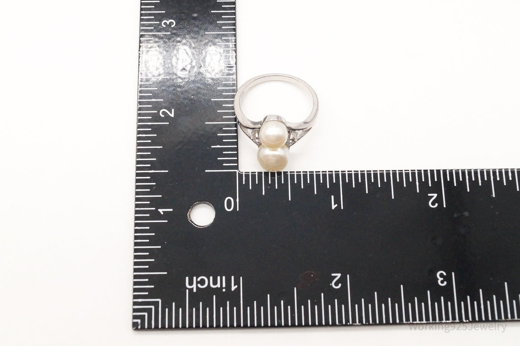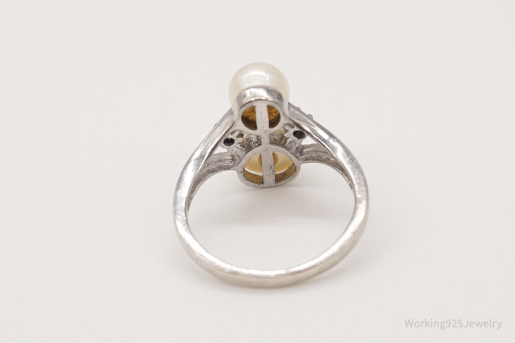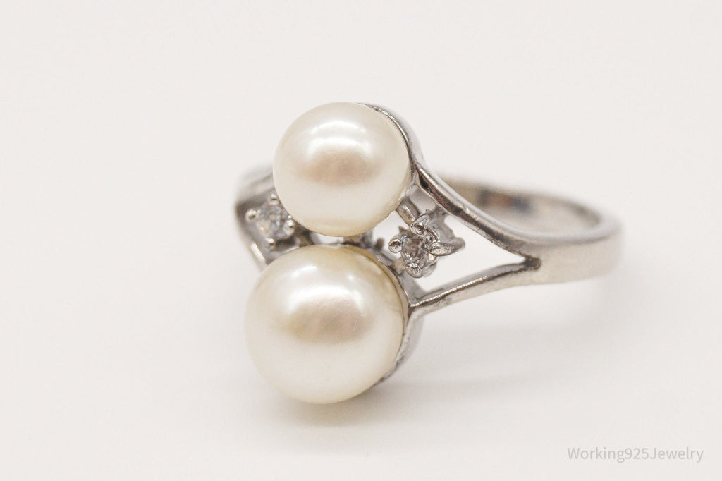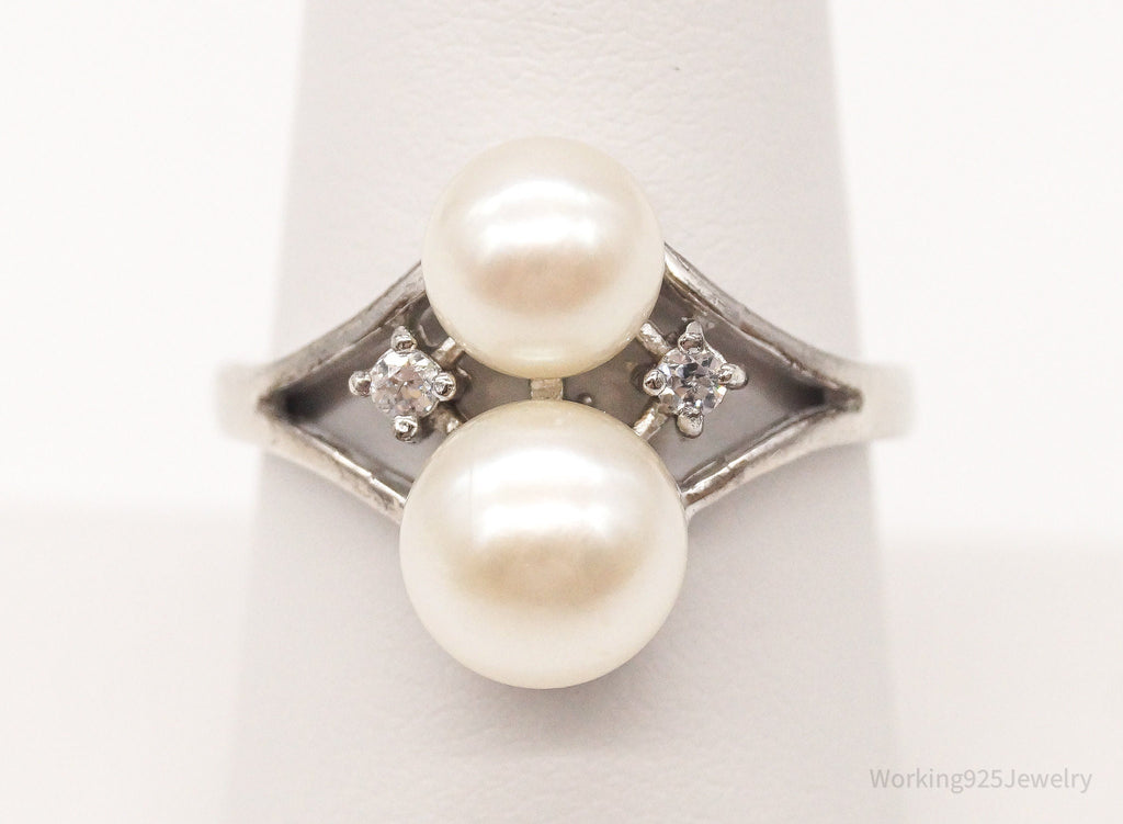 Vintage Faux Pearl Cubic Zirconia Sterling Silver Ring - Size 8