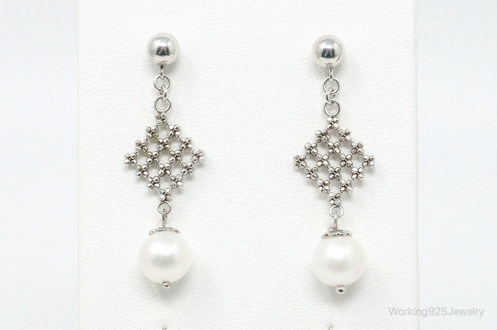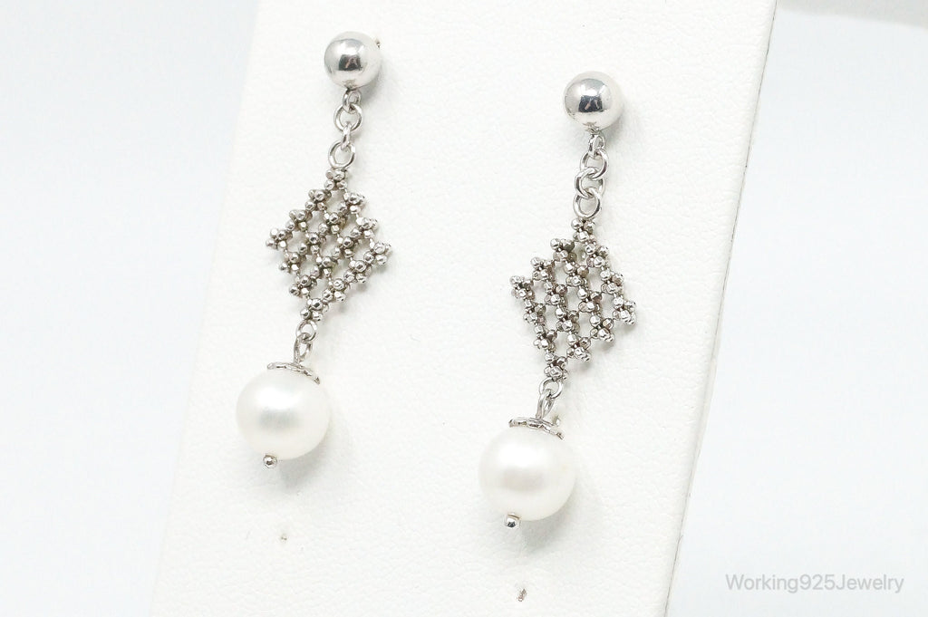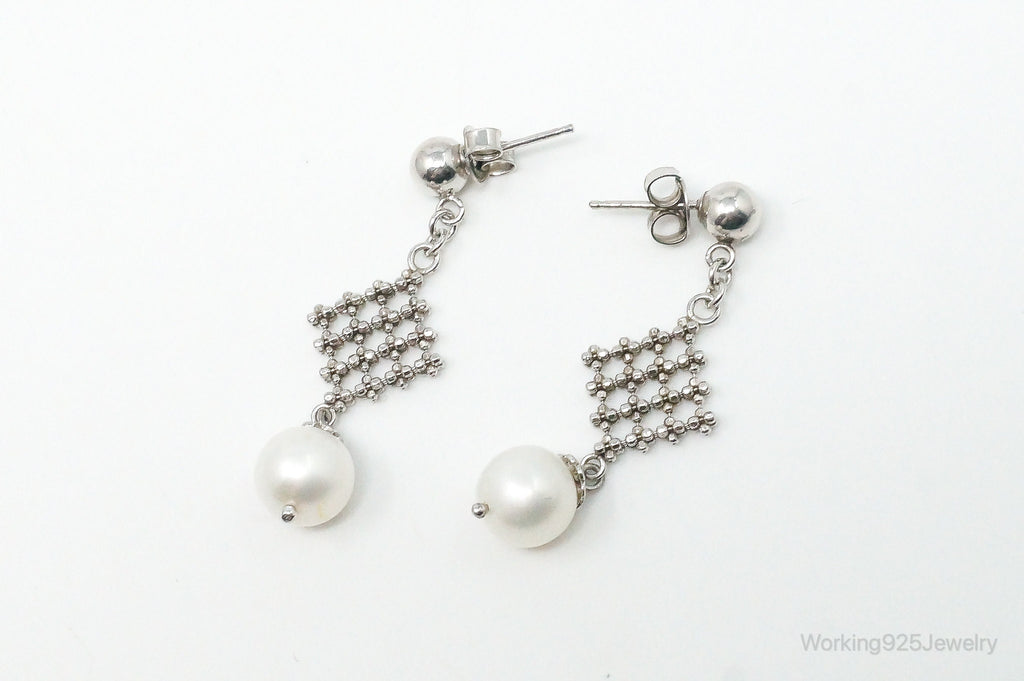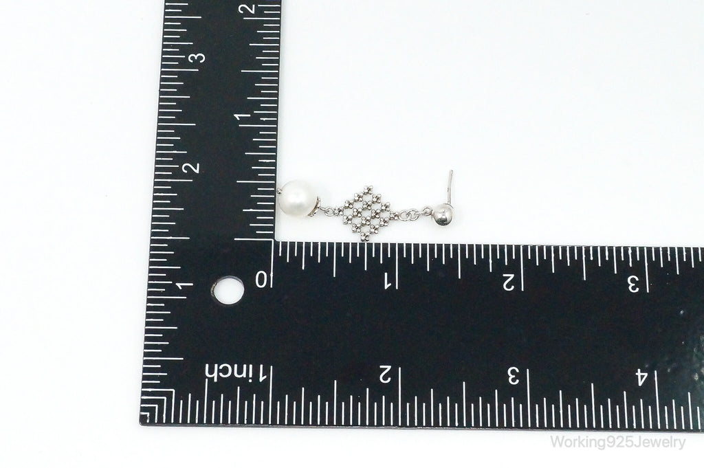 Vintage Faux Pearl Dangle Sterling Silver Earrings