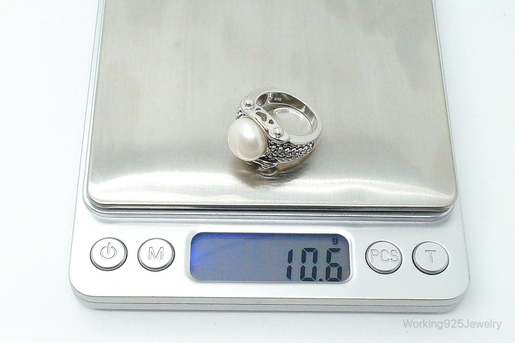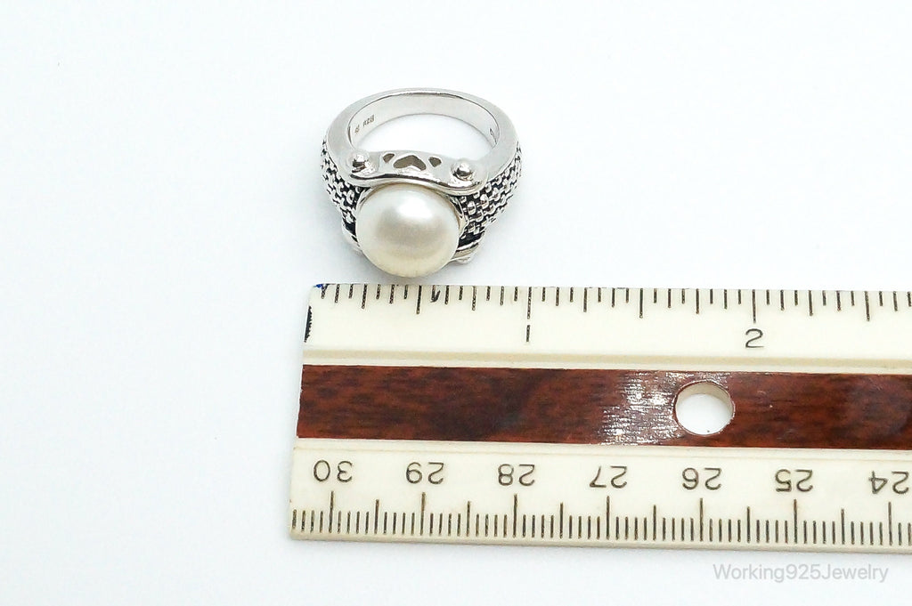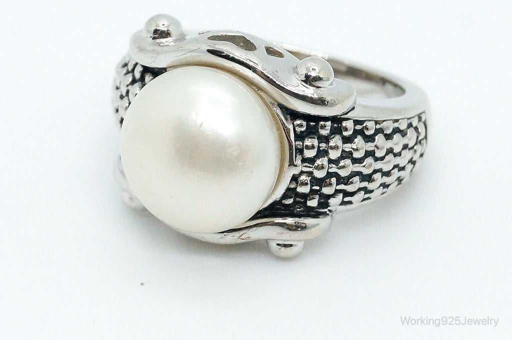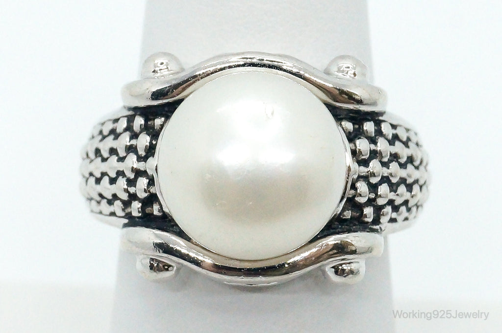 Vintage Faux Pearl Sterling Silver Ring - Size 7