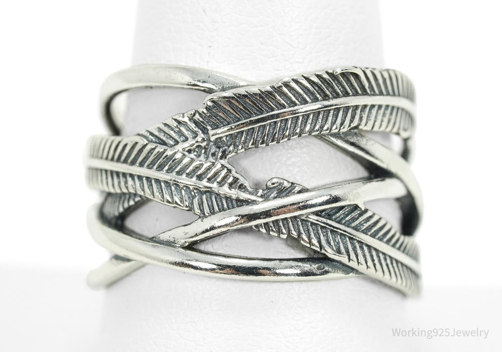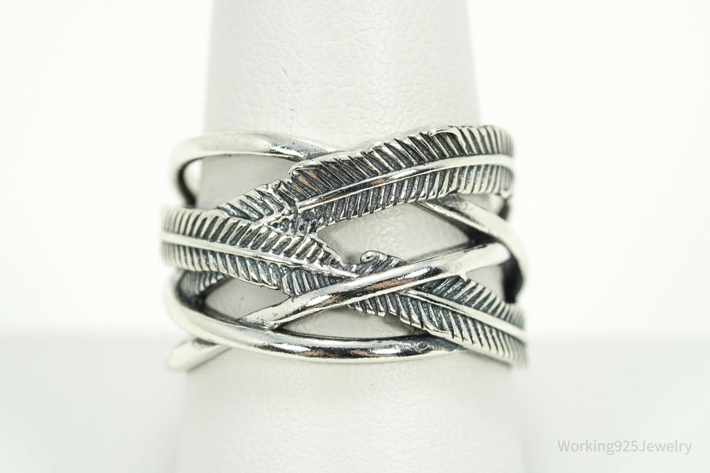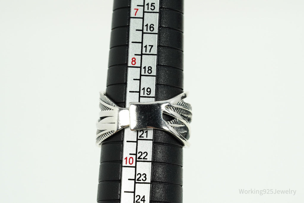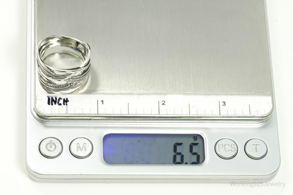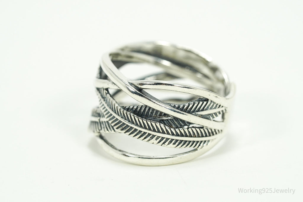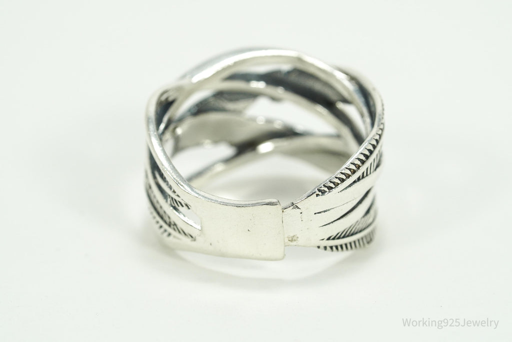 Vintage Feather Wrap Southwestern Sterling Silver Ring - Size 9.25 Adjustable