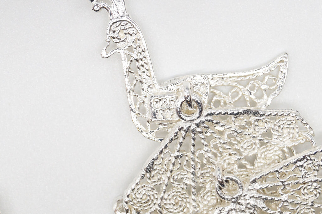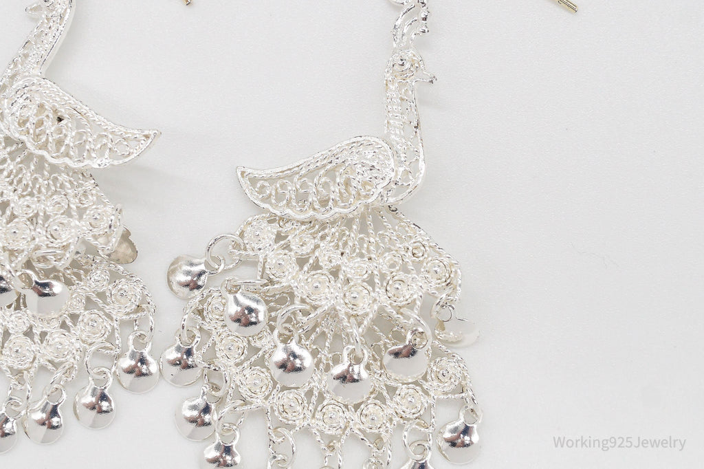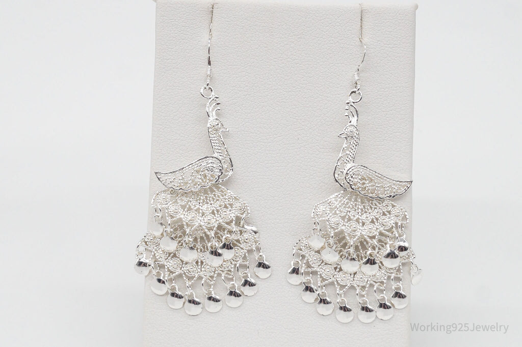 Vintage Filigree Peacock Chandelier Sterling Silver Earrings