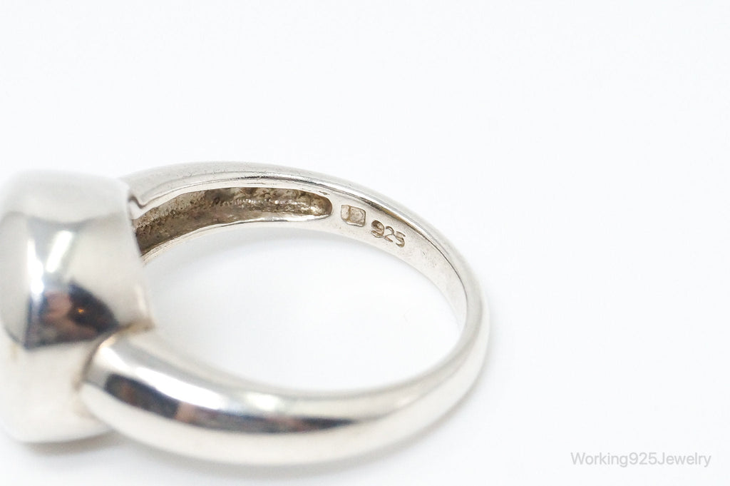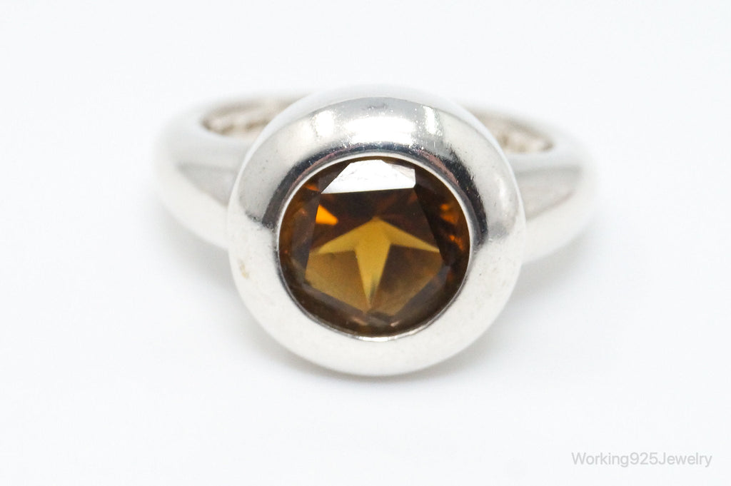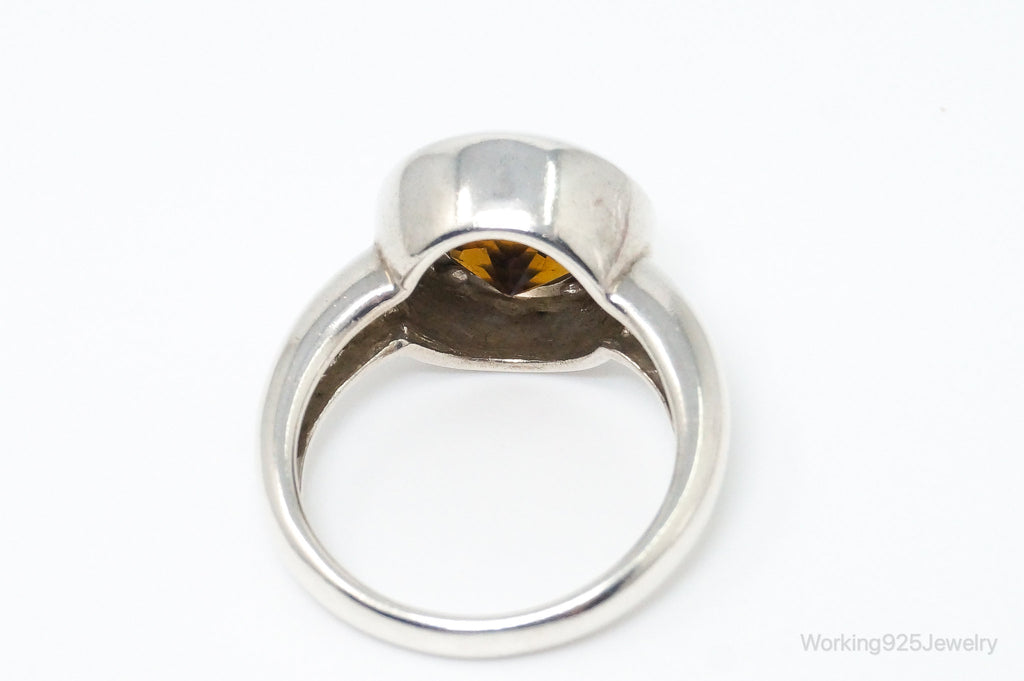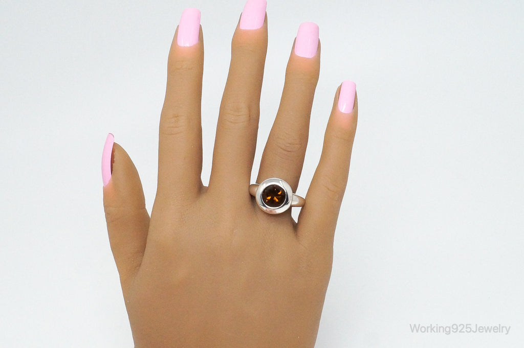 Vintage Fire Citrine CHECK STONE Sterling Silver Ring - SZ 9