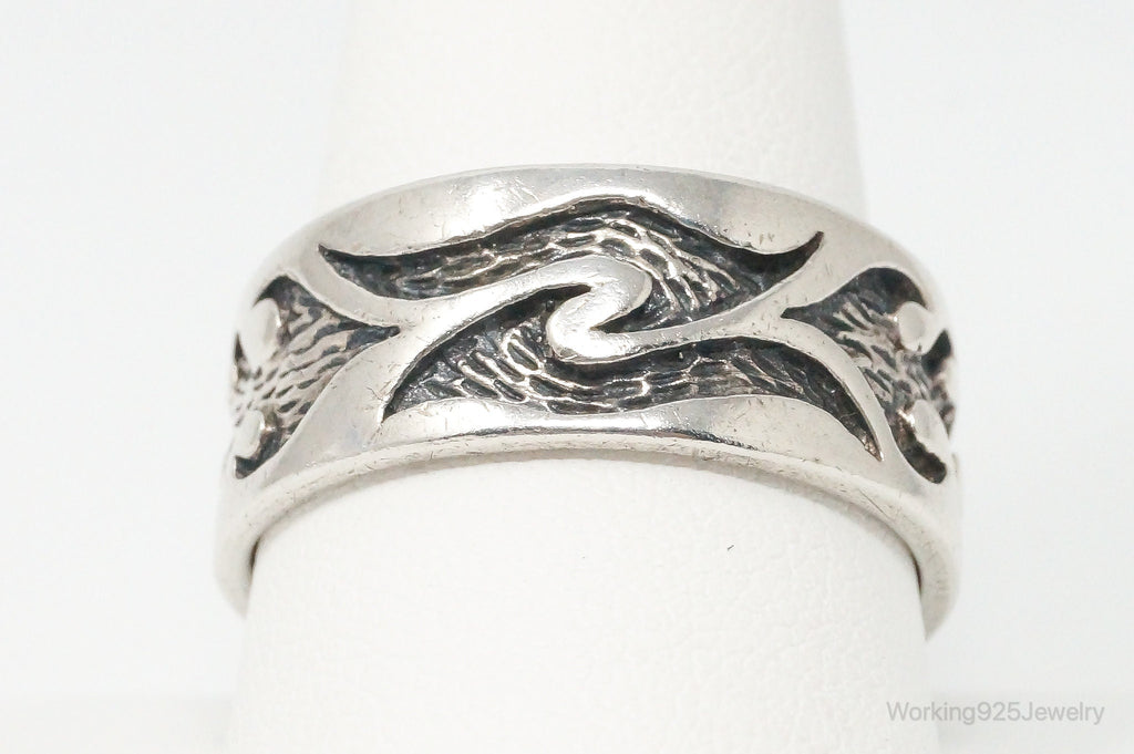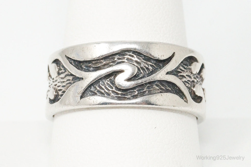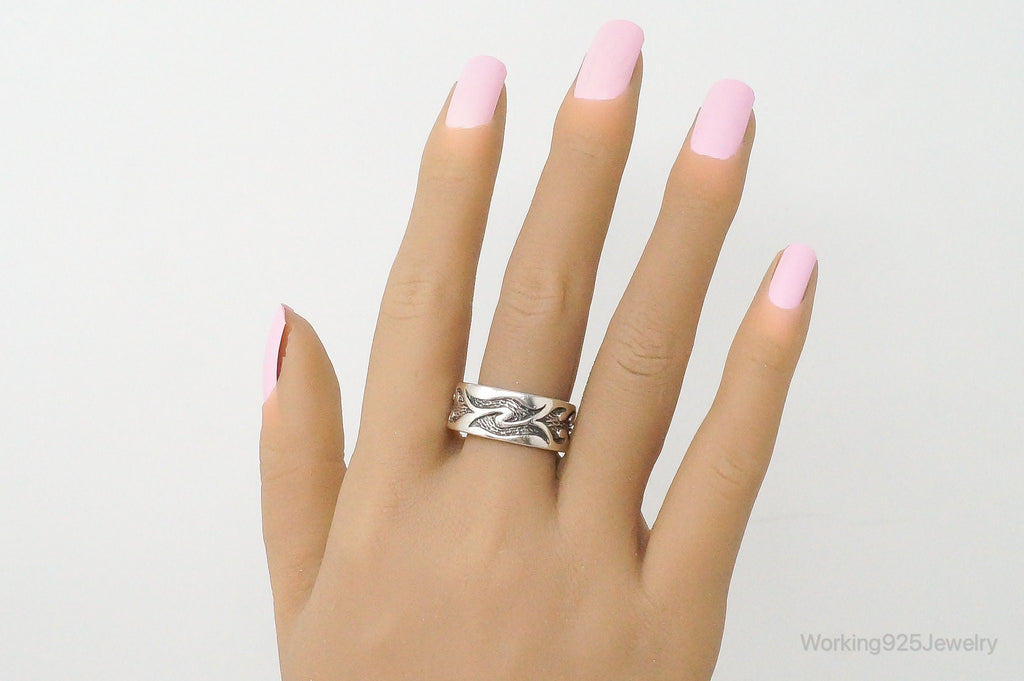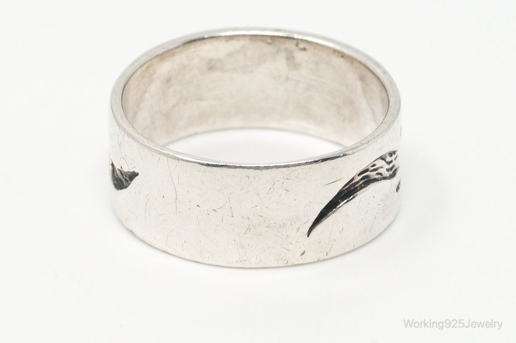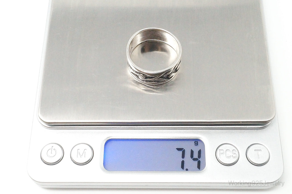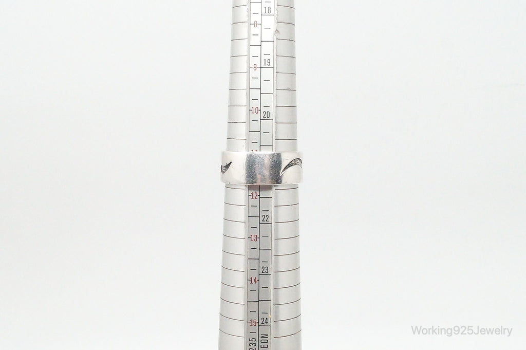 Vintage Fire Tribal Design Sterling Silver Band Ring - Size 11.75