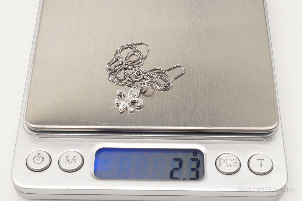 Vintage Fleur De Lis Cubic Zirconia Sterling Silver Necklace