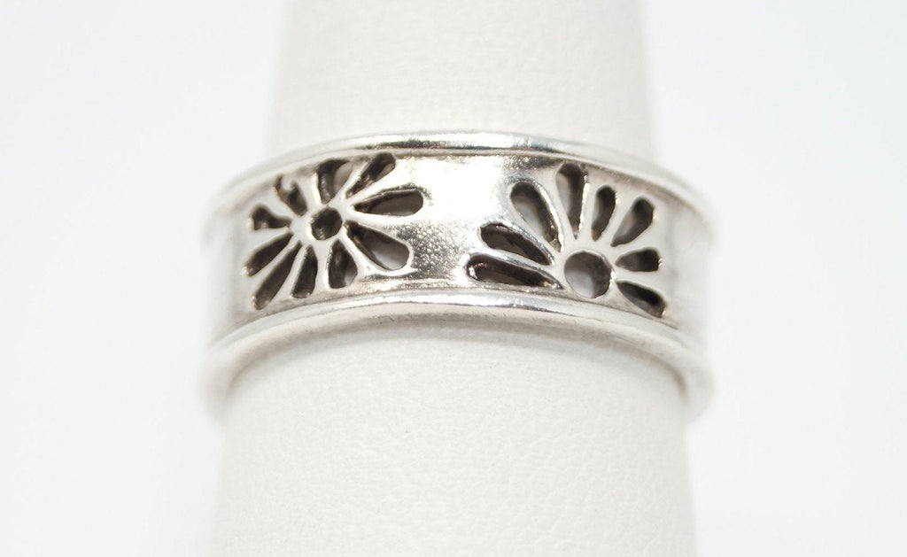 Vintage Floral Cut Out Sterling Silver Band Ring - Sz 7.5