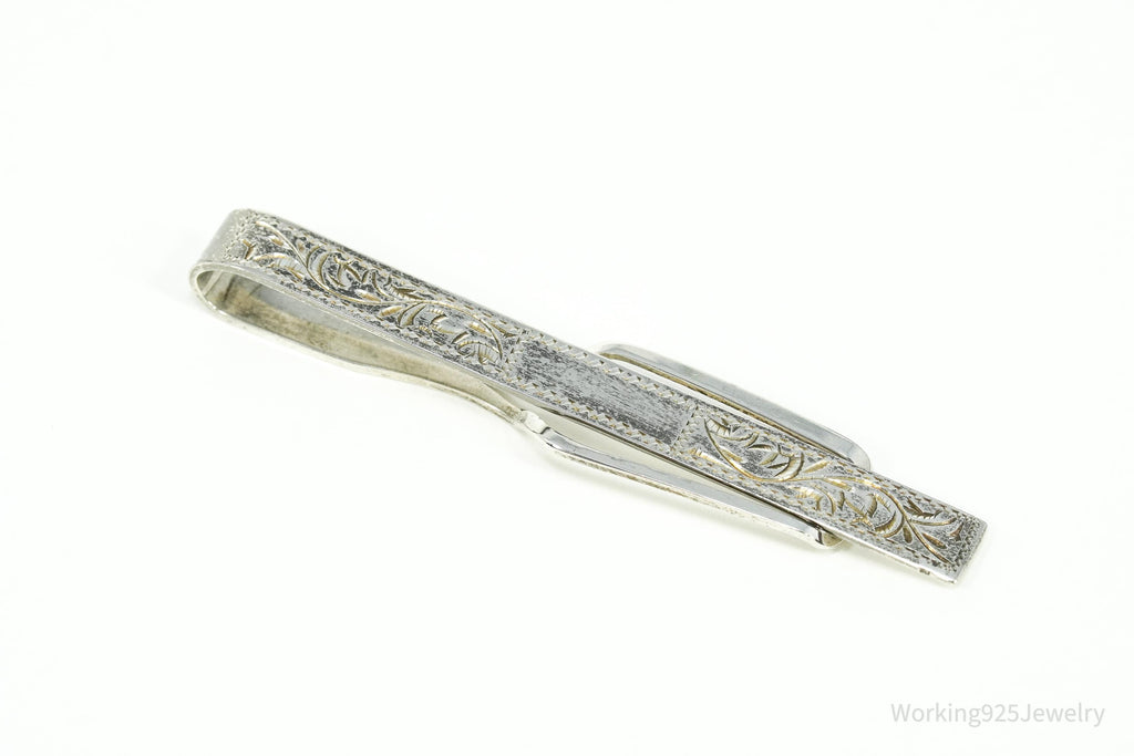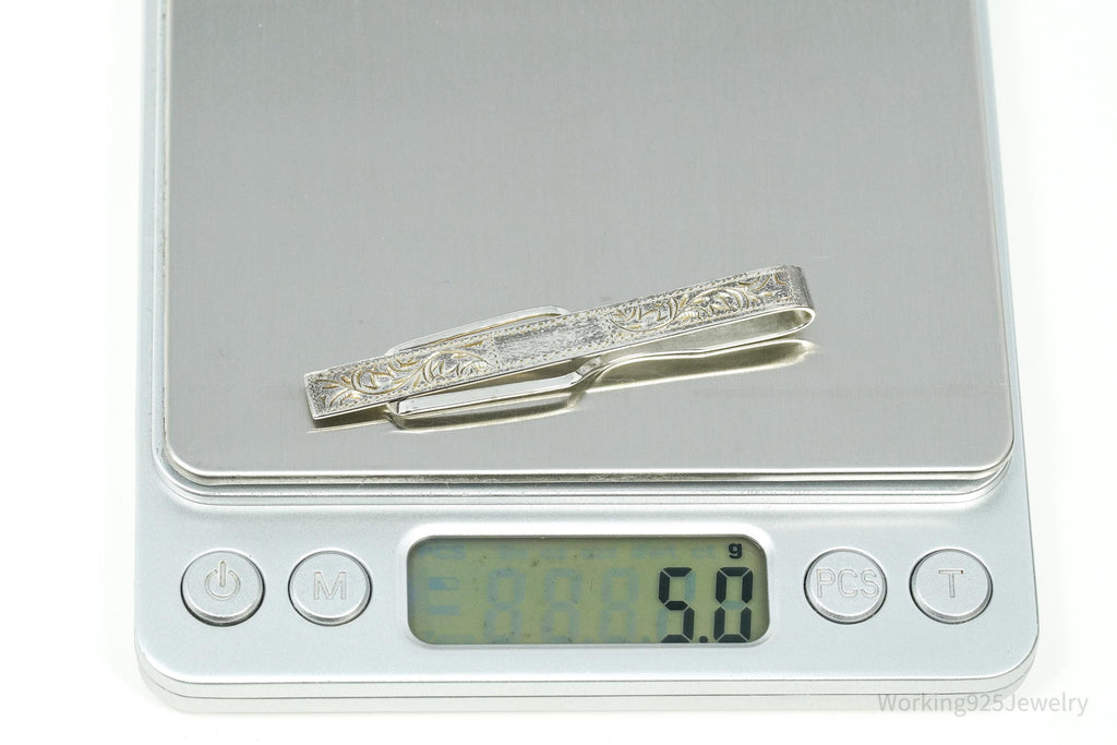 Vintage Floral Etched 950 Sterling Silver Money Clip Tie Clip