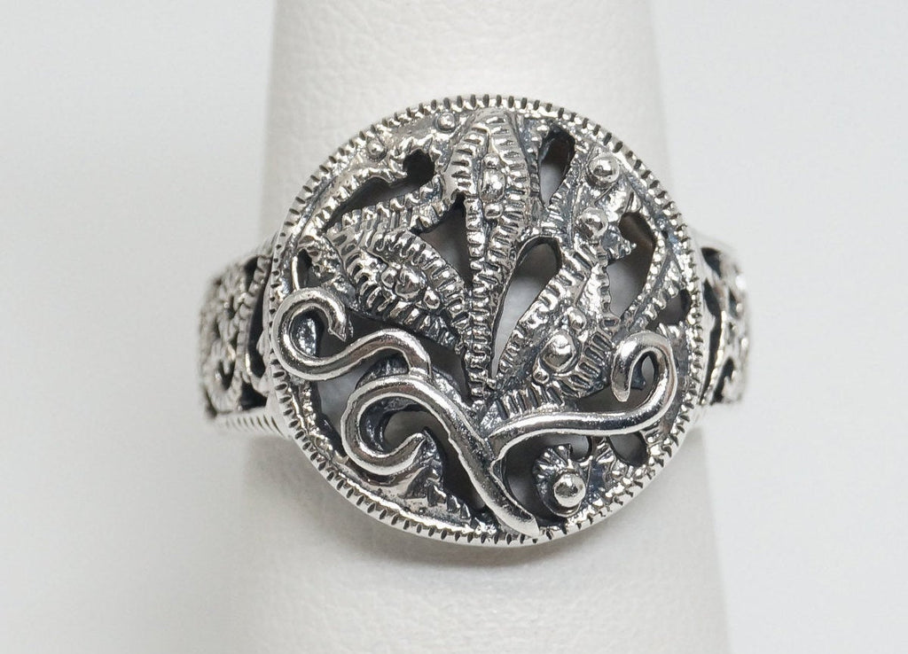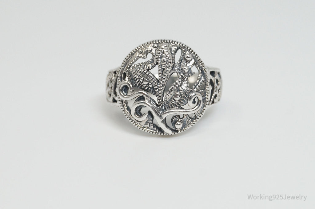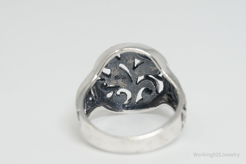 Vintage Floral Motif Cut Out Design Sterling Silver Ring - Sz 6.5