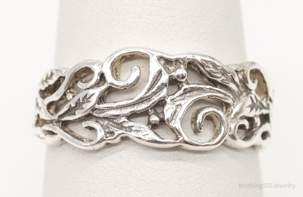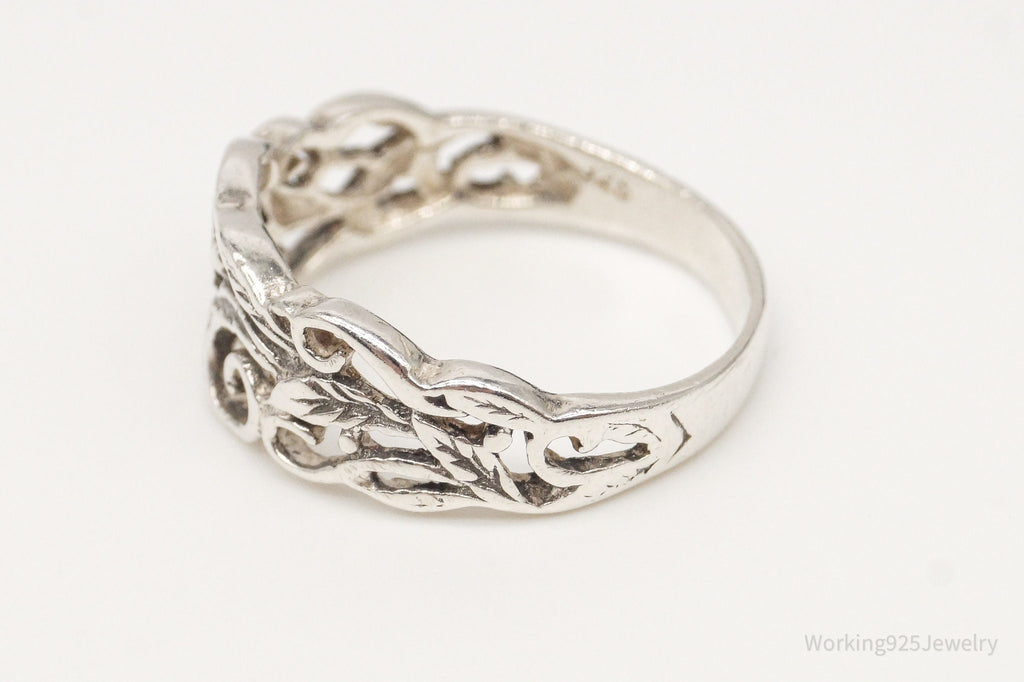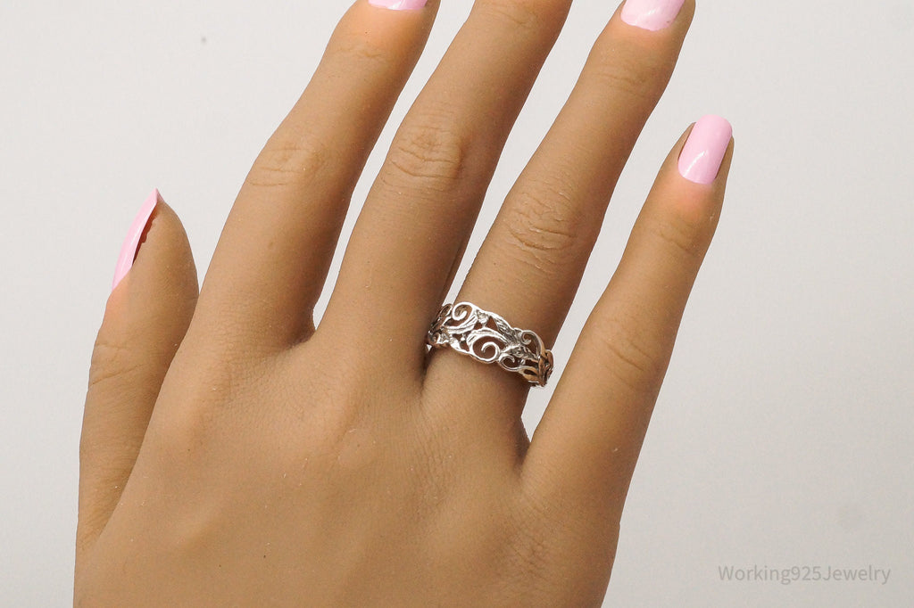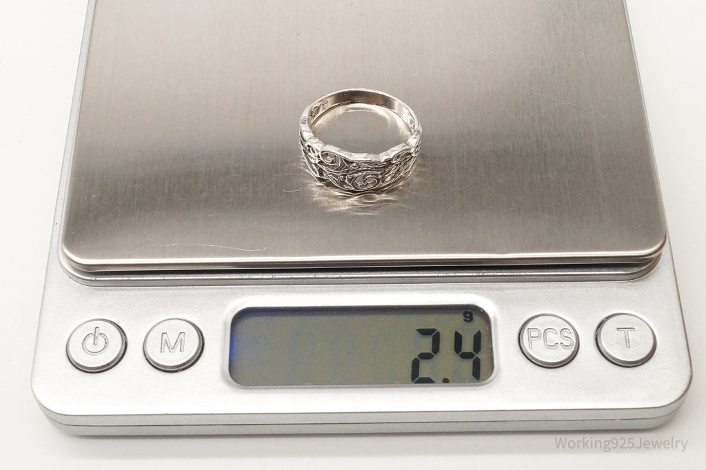 Vintage Flower Band Sterling Silver Ring Size 7.25