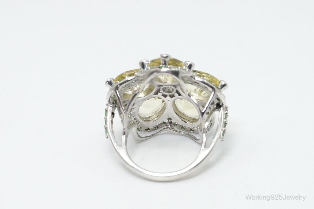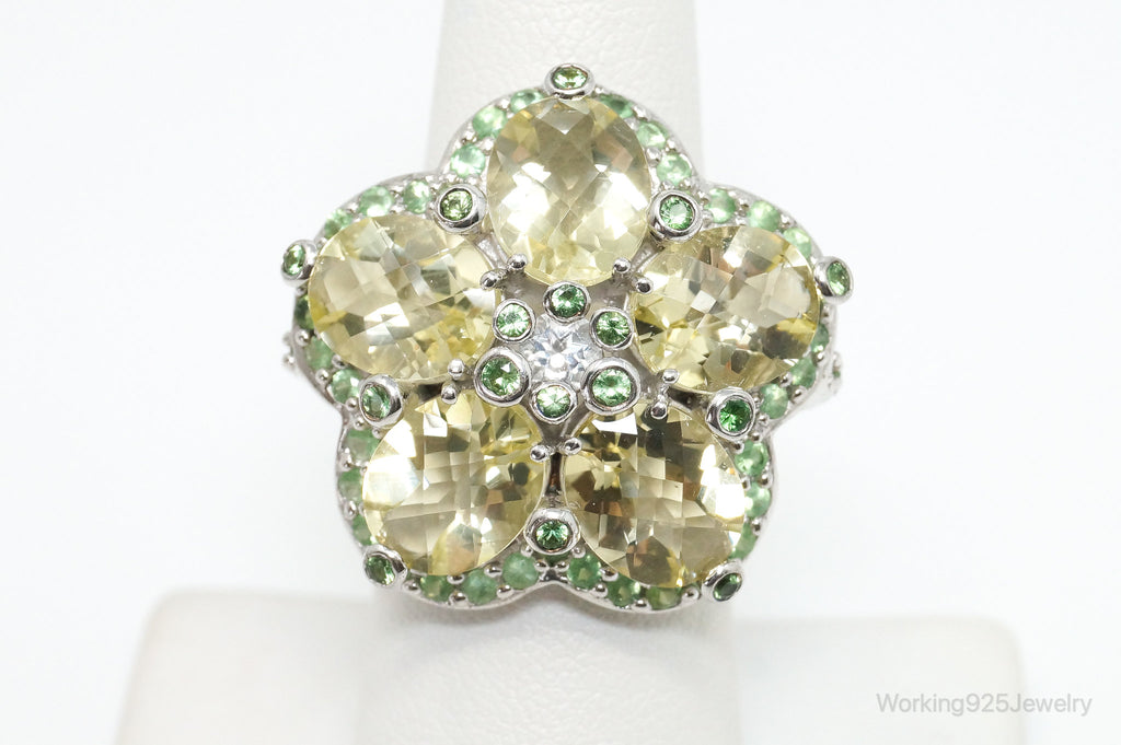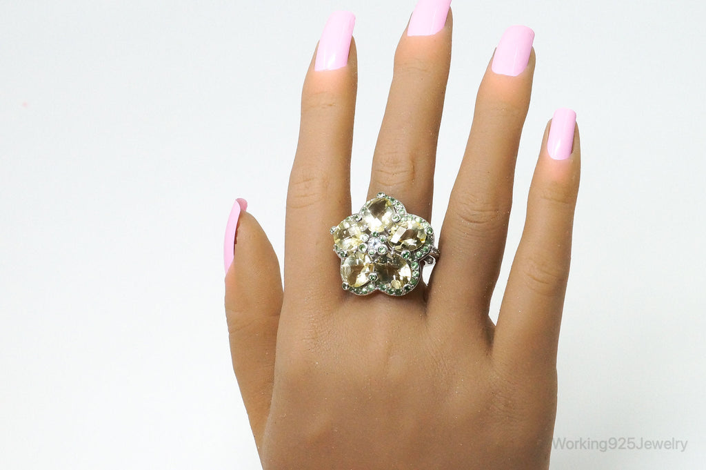 Vintage Flower Multi Gem Sterling Silver Statement Ring - Size 7