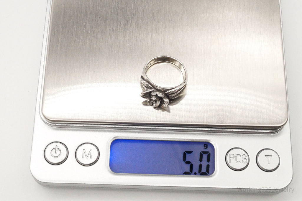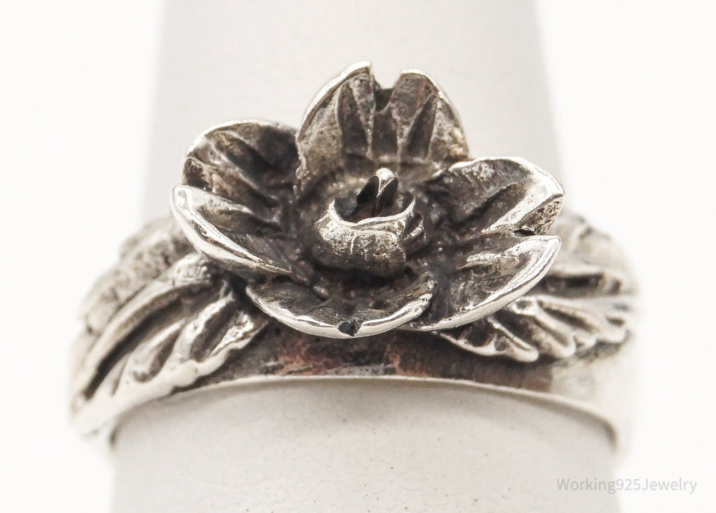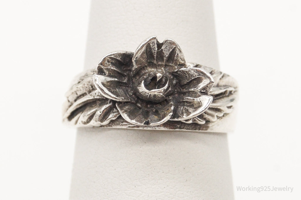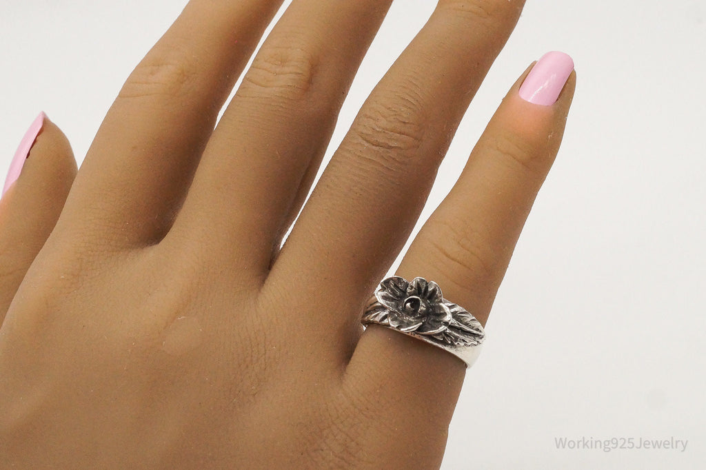 Vintage Flower Sterling Silver Ring - Size 4.75