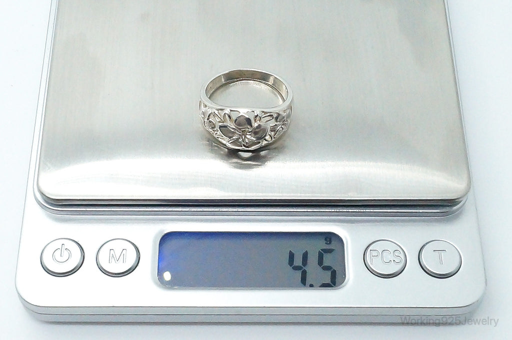 Vintage Flowers Cut Out Sterling Silver Ring - Size 8.75