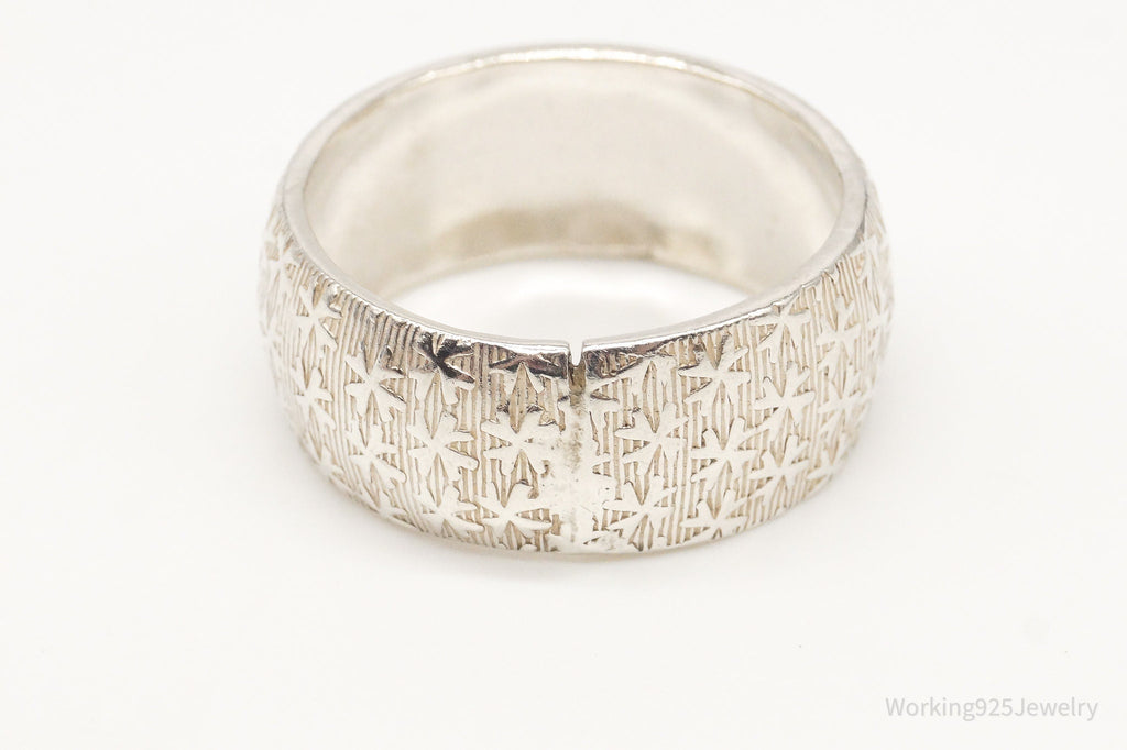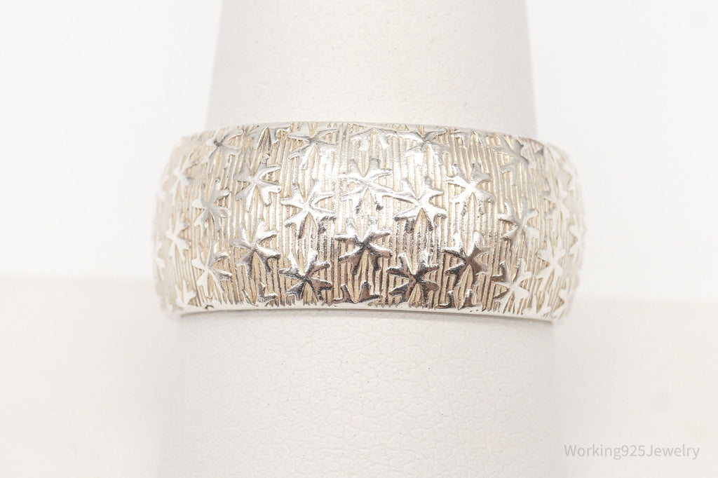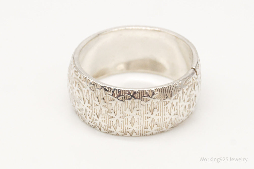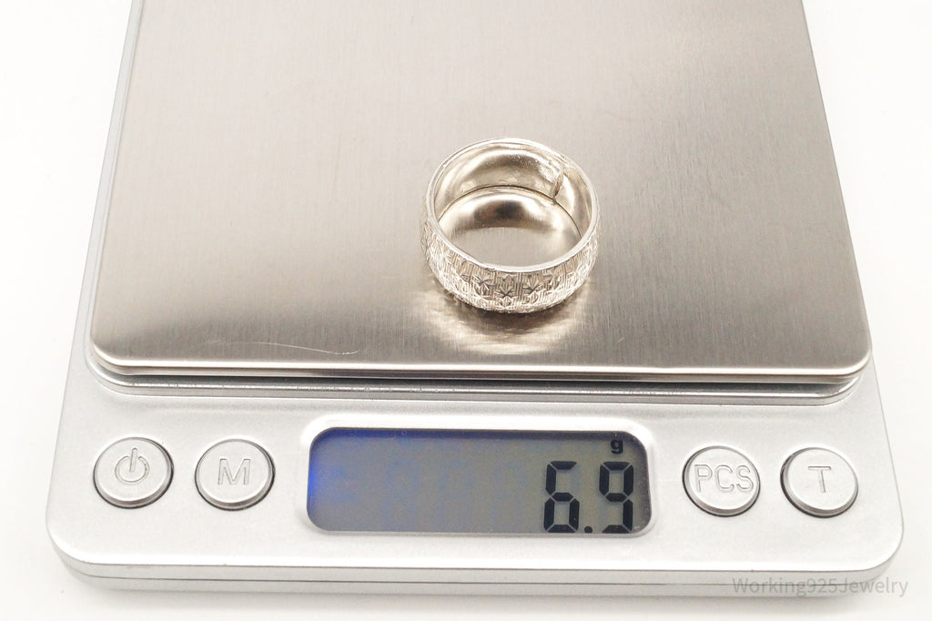 Vintage Flowers Pattern Sterling Silver Band Ring Size 10