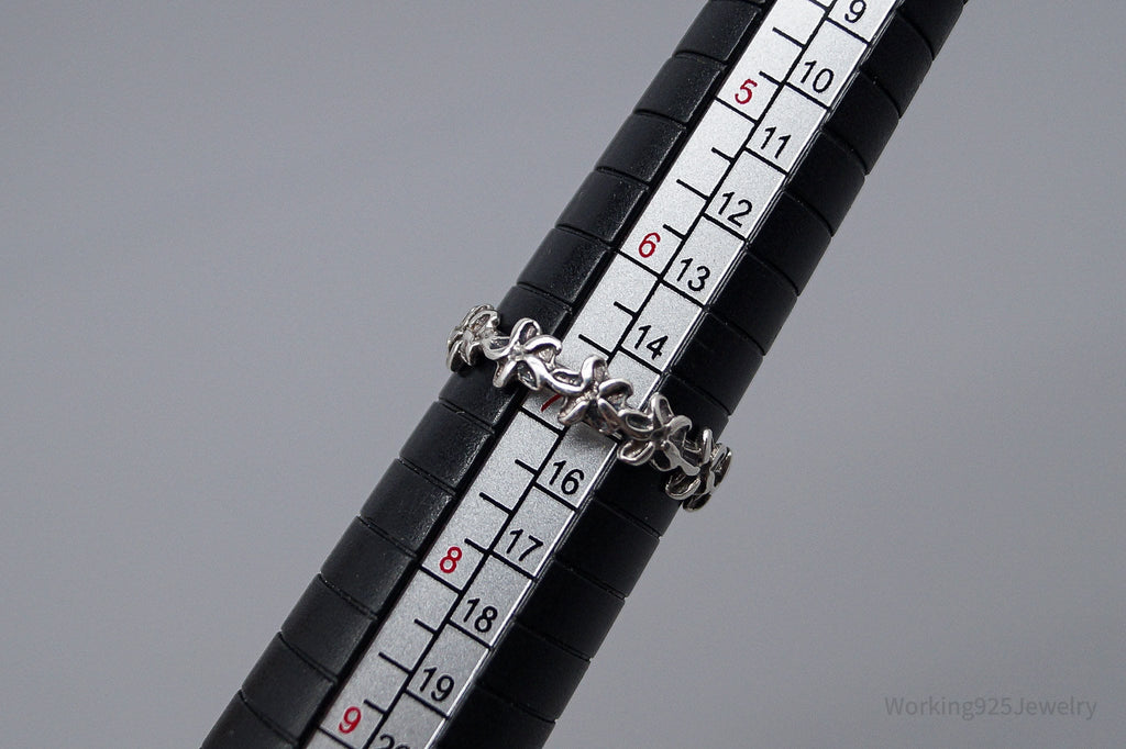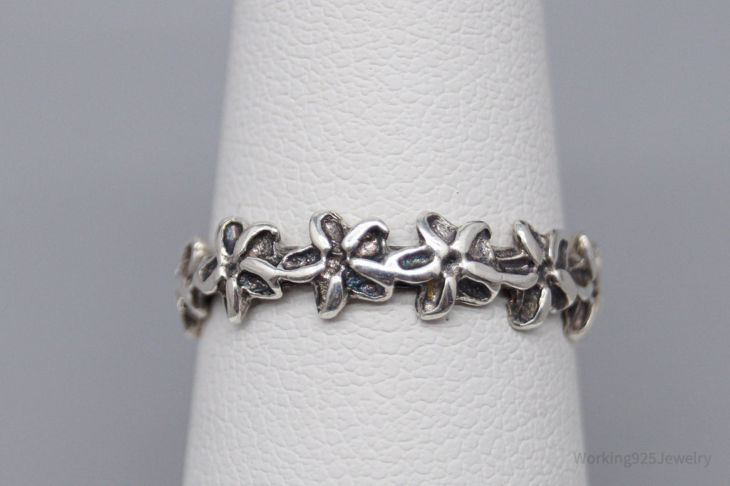 Vintage Flowers Pattern Sterling Silver Band Ring Size 6.75