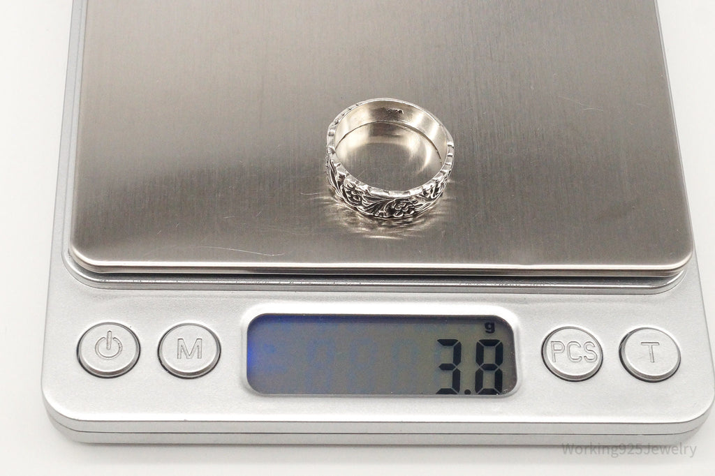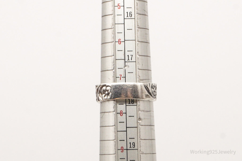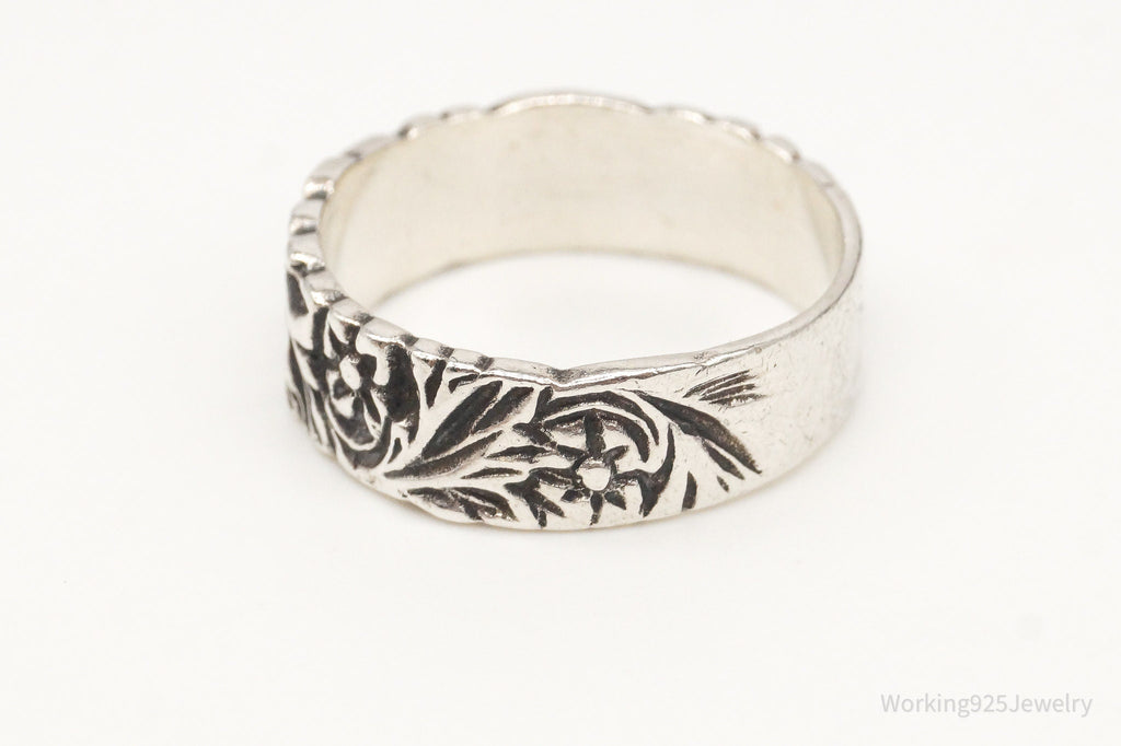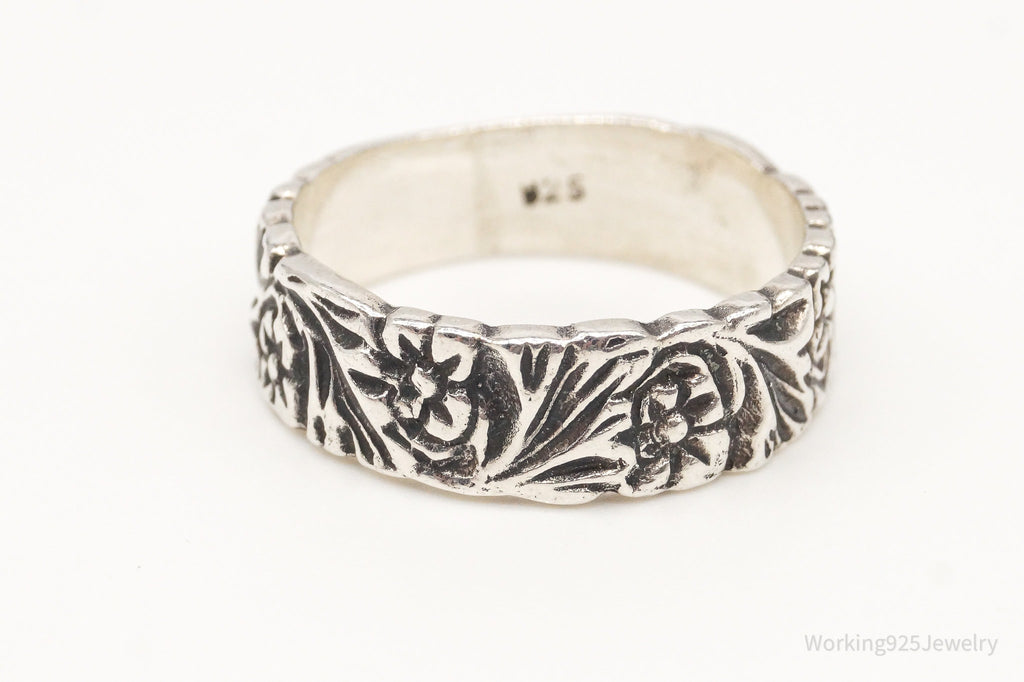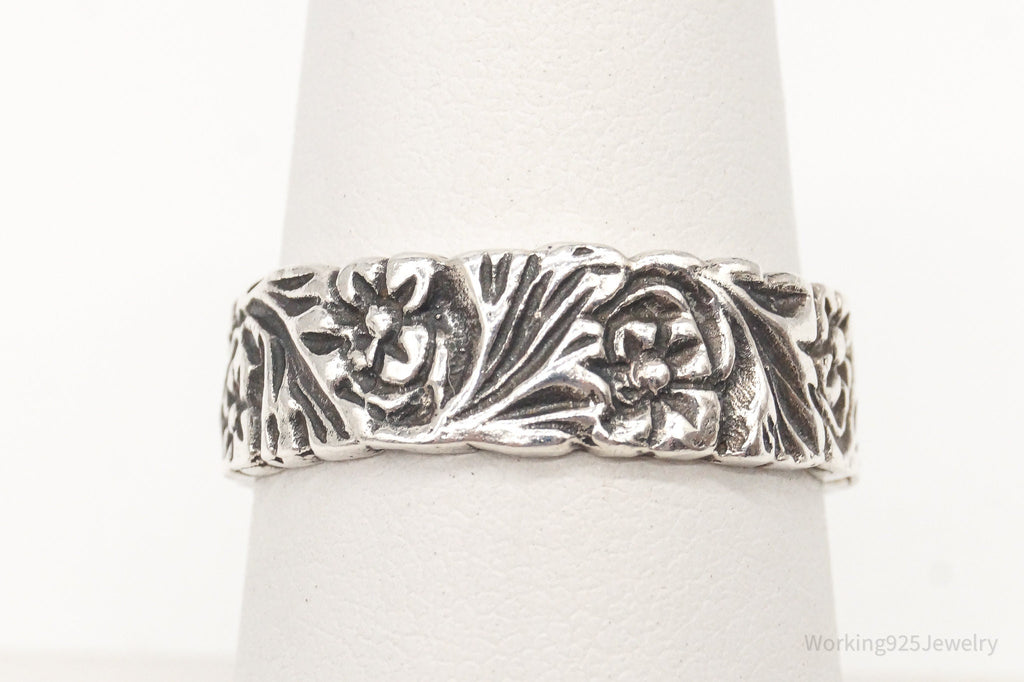 Vintage Flowers Sterling Silver Band Ring - Size 7.5