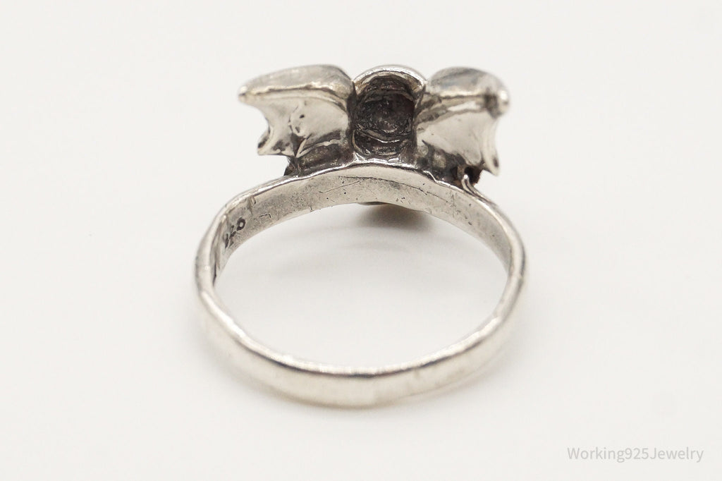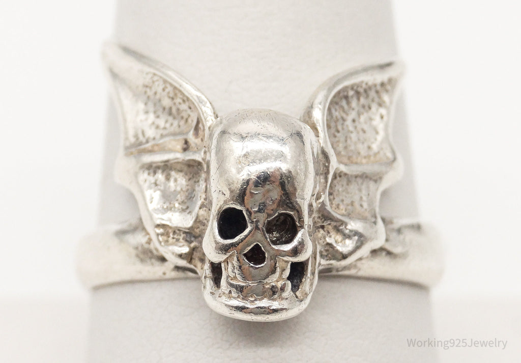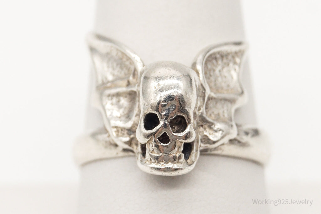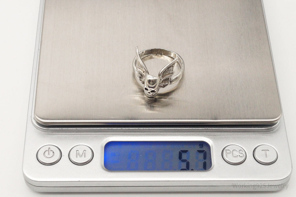 Vintage Flying Skull Sterling Silver Ring - Size 9