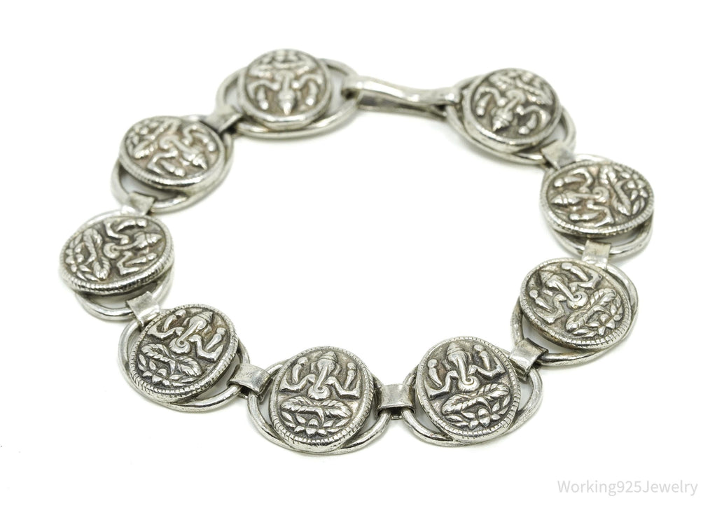 Vintage Ganesha Sterling Silver Bracelet 7.25"