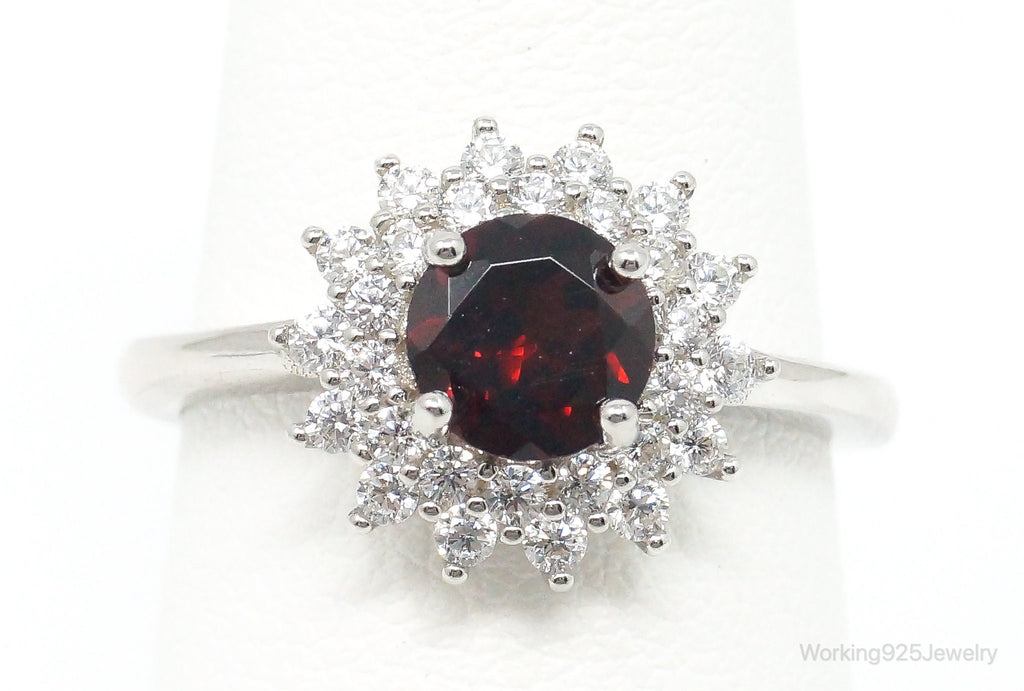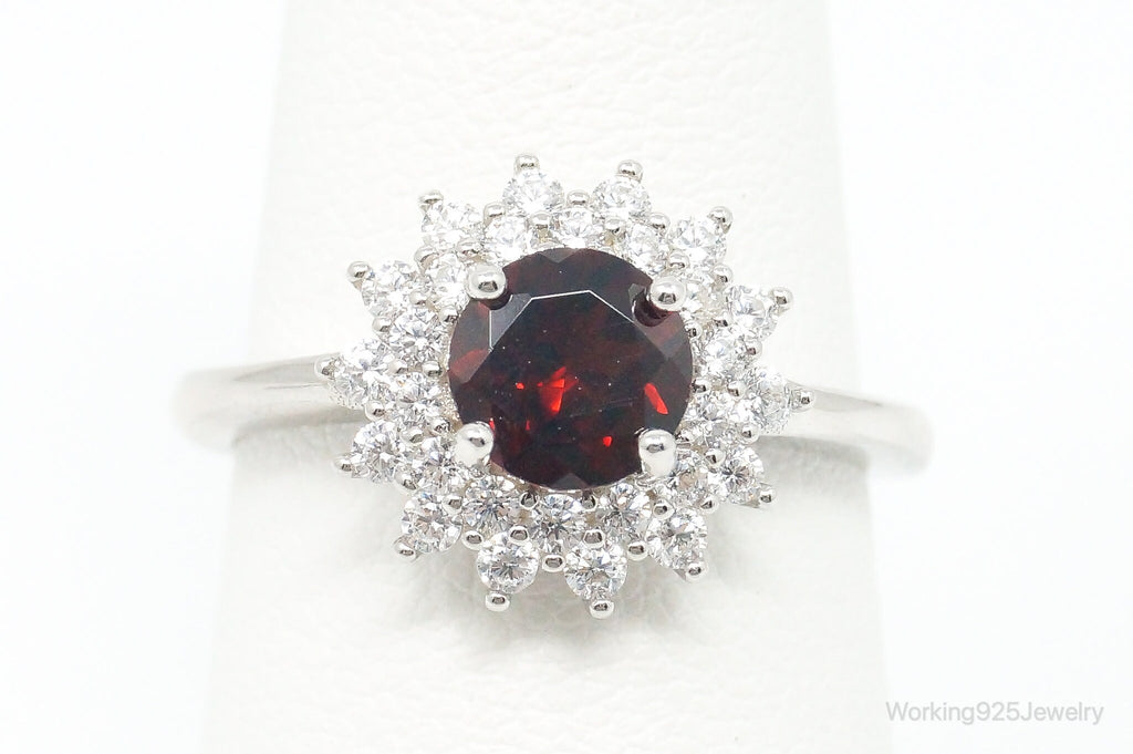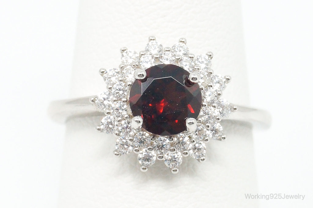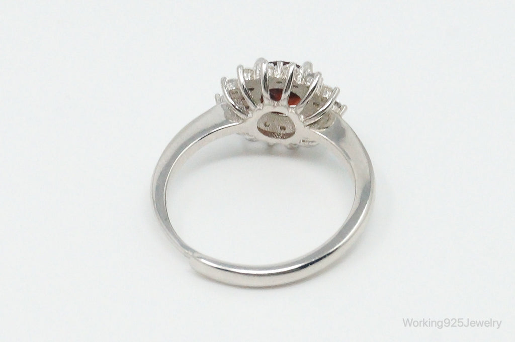 Vintage Garnet Cubic Zirconia Sterling Silver Ring - Size 6.75 Adjustable