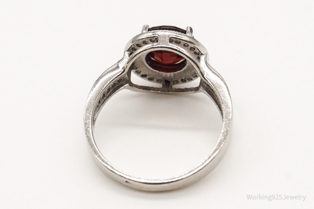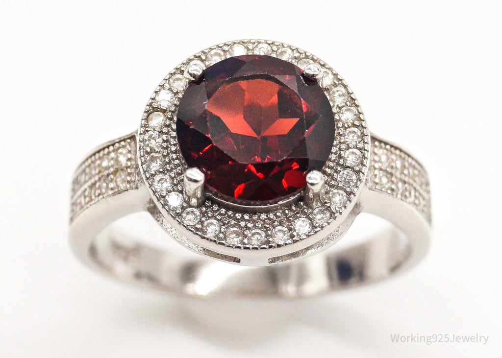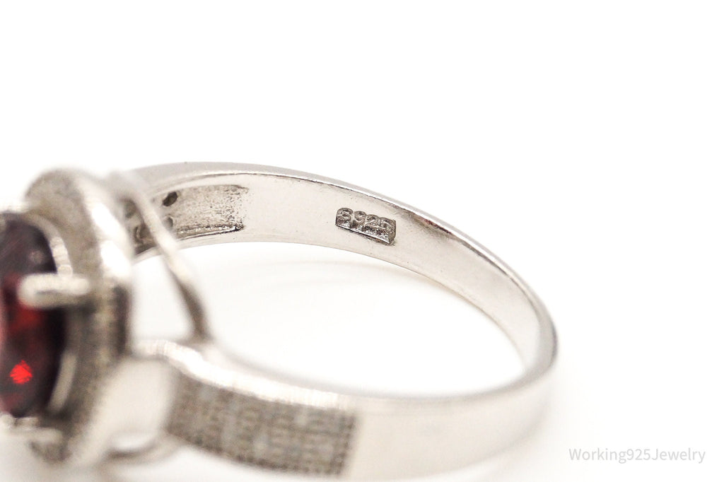 Vintage Garnet Cubic Zirconia Sterling Silver Ring - Size 7