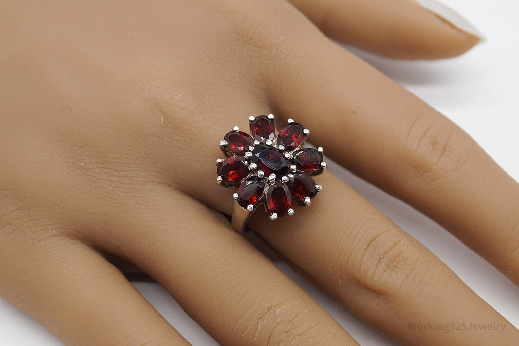 Vintage Garnet Flower Sterling Silver Ring - Size 8.25