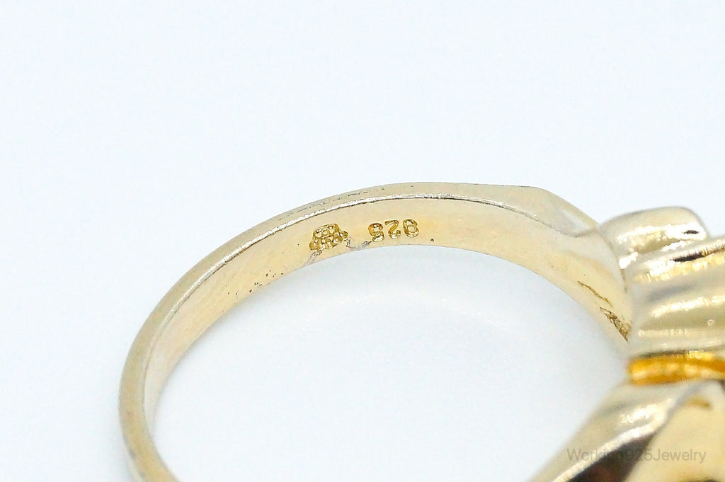 Vintage Garnet Gold Vermeil Sterling Silver Ring - Size 7