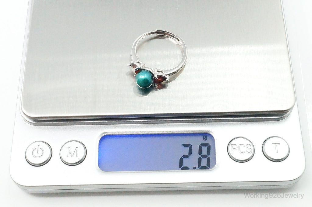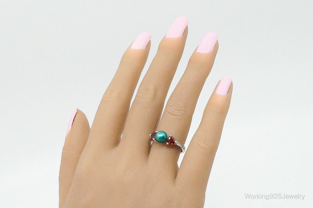 Vintage Garnet Lab Pearl Cubic Zirconia Sterling Silver Ring - Size 7.5 Adj.