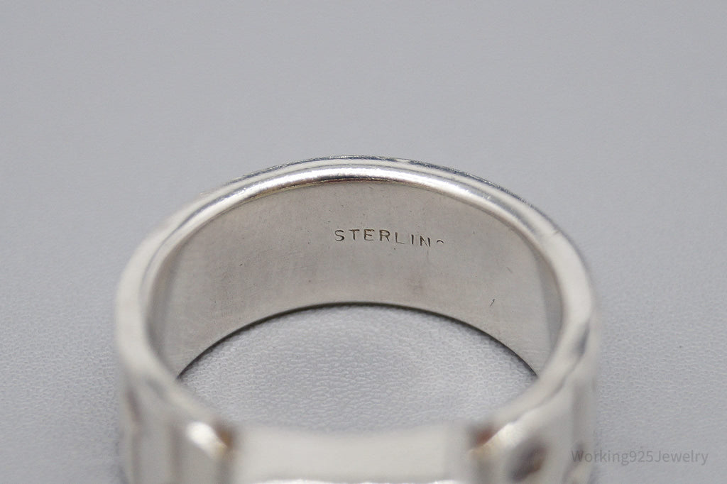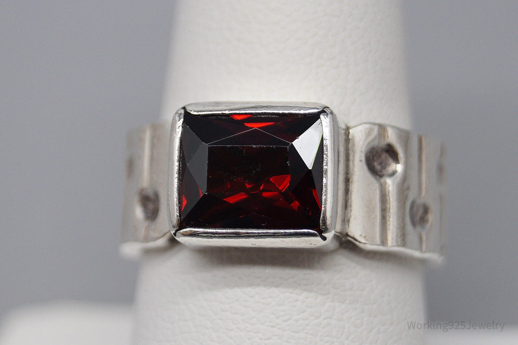Vintage Garnet Modernist Style Sterling Silver Ring - Size 8.25