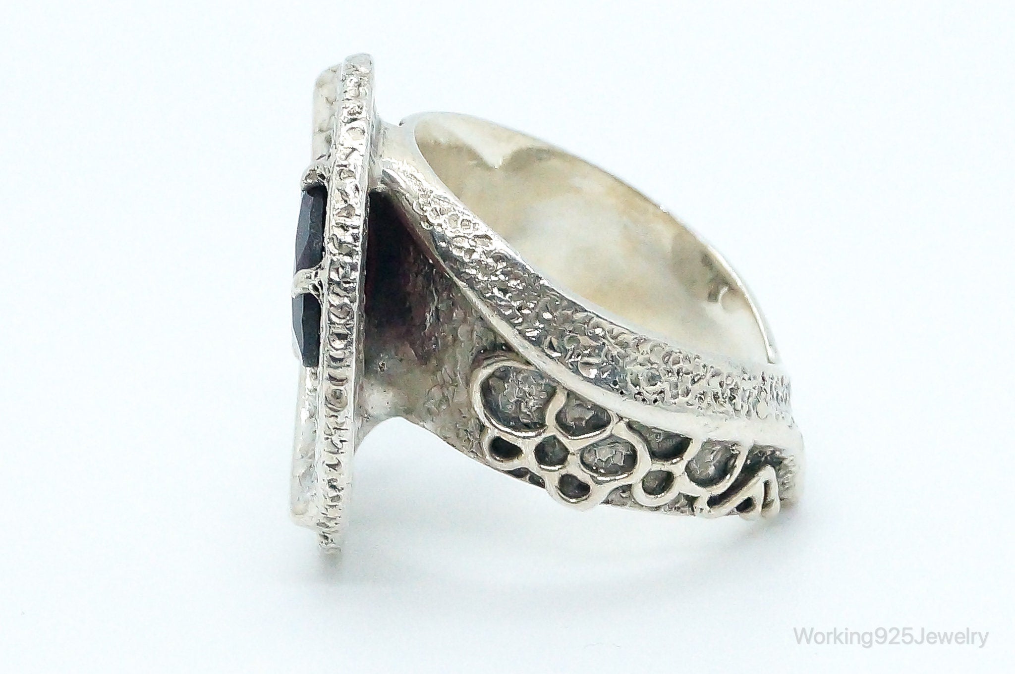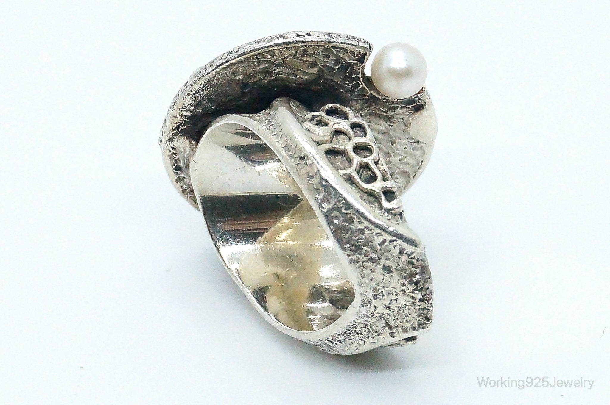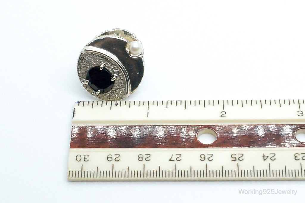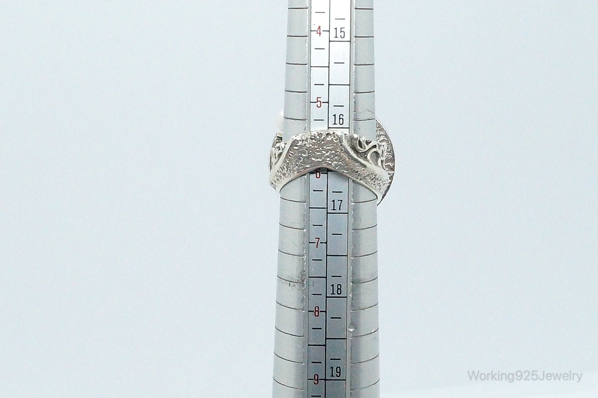 Vintage Garnet Pearl Sterling Silver Ring - Size 6