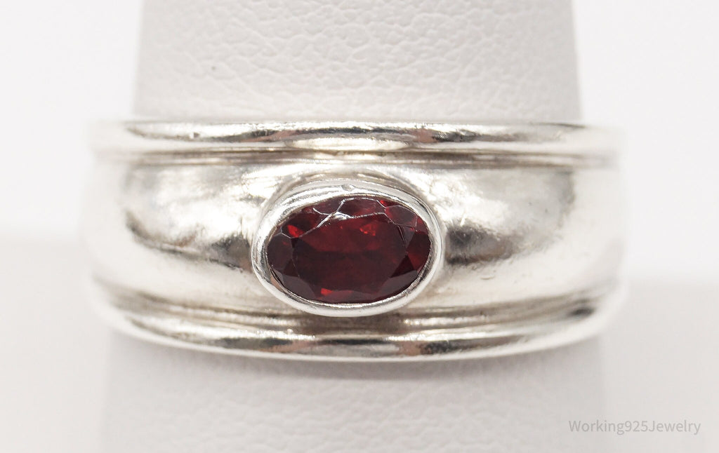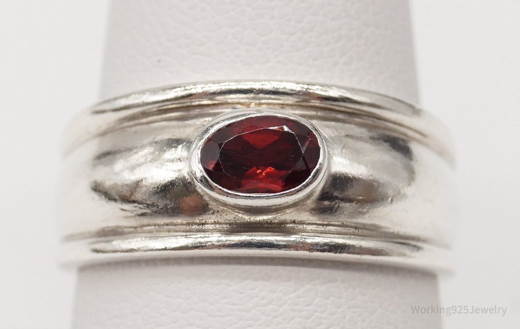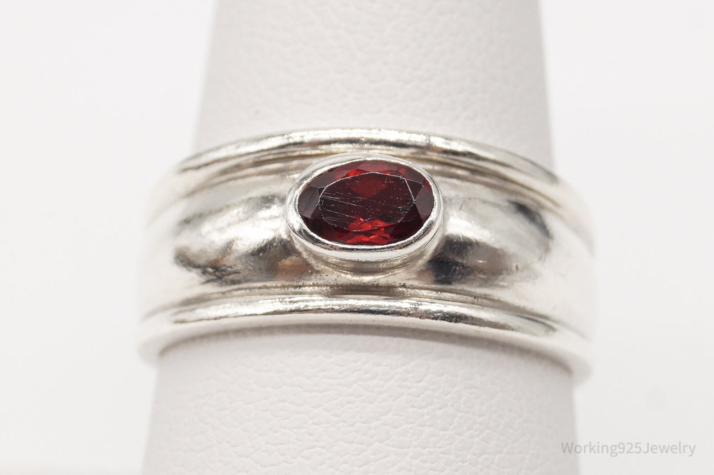 Vintage Garnet Sterling Silver Band Ring - Size 8.75