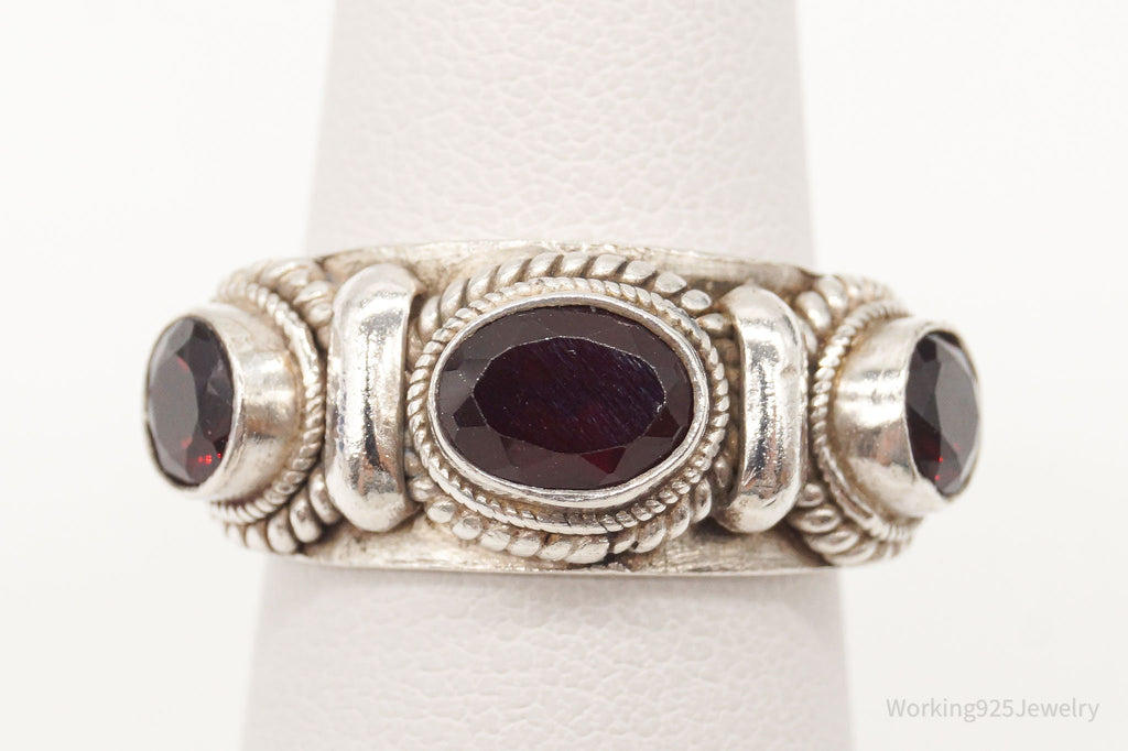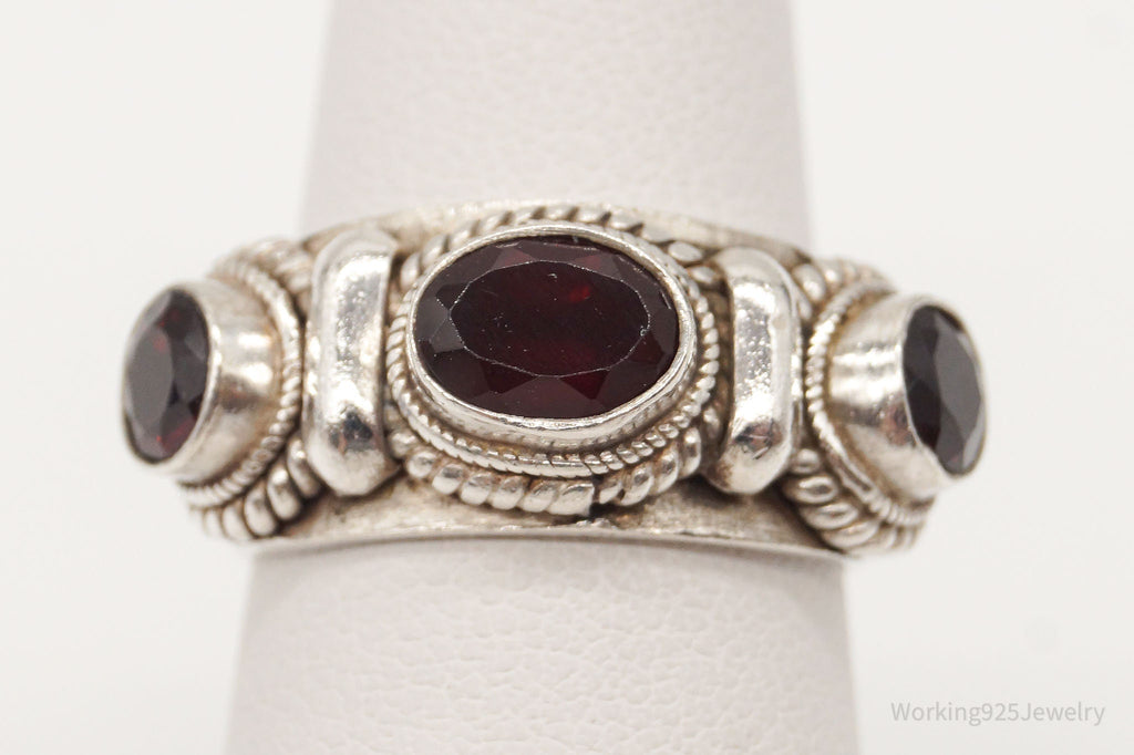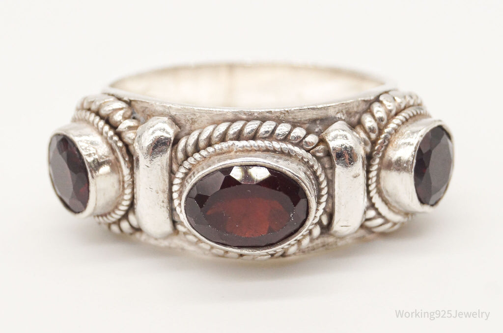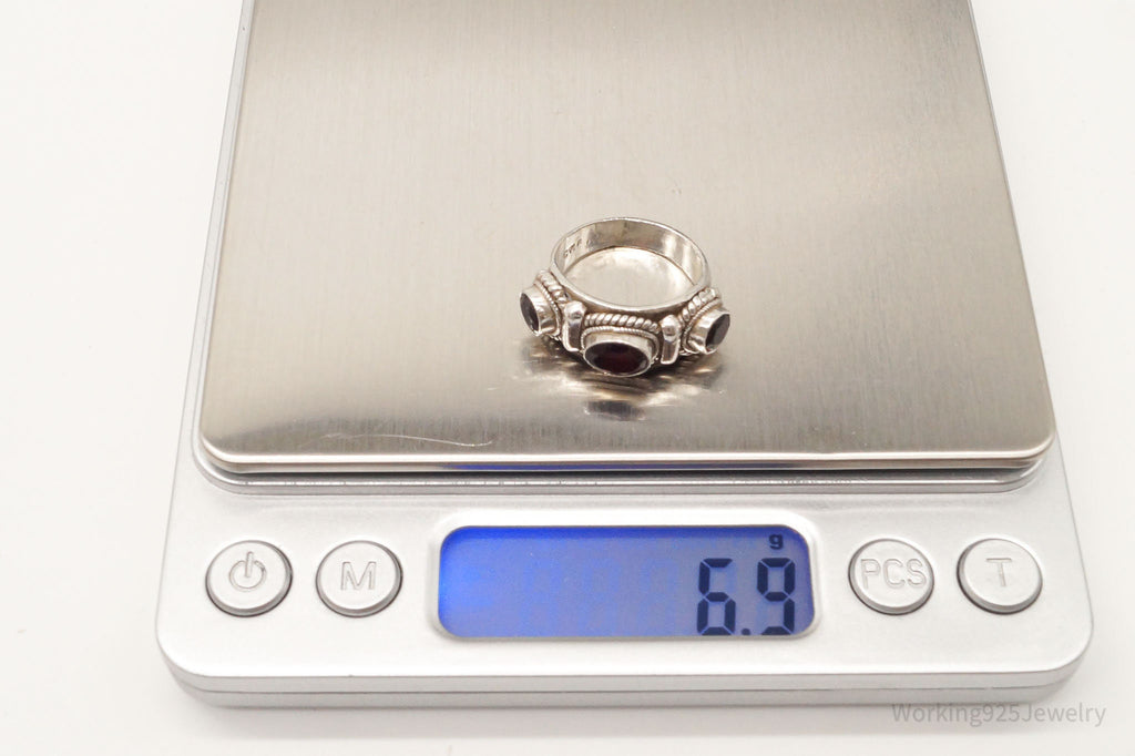 Vintage Garnet Sterling Silver Ring - Size 6.5
