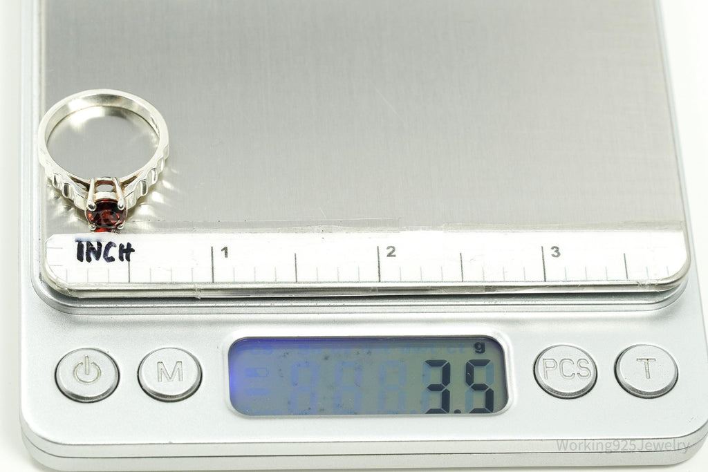 Vintage Garnet Sterling Silver Ring - Size 7.25