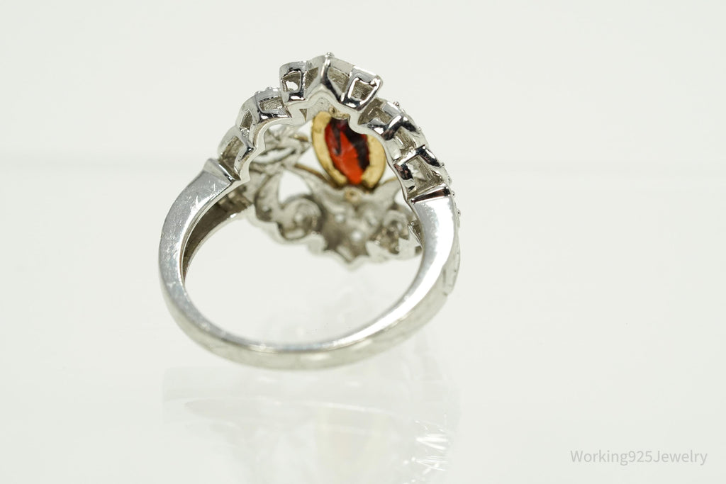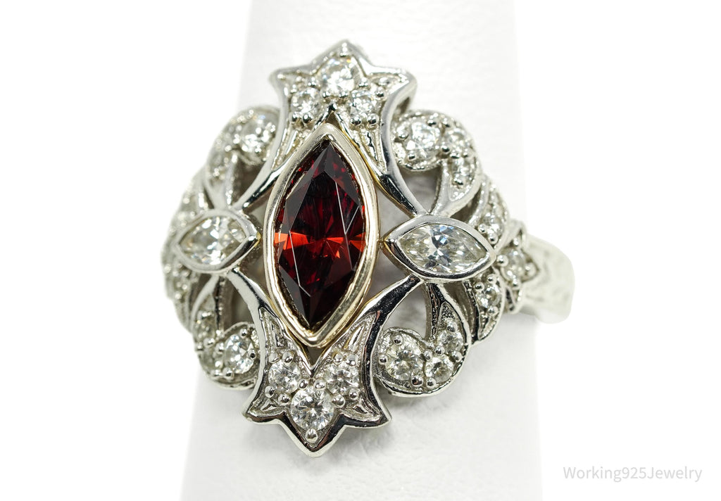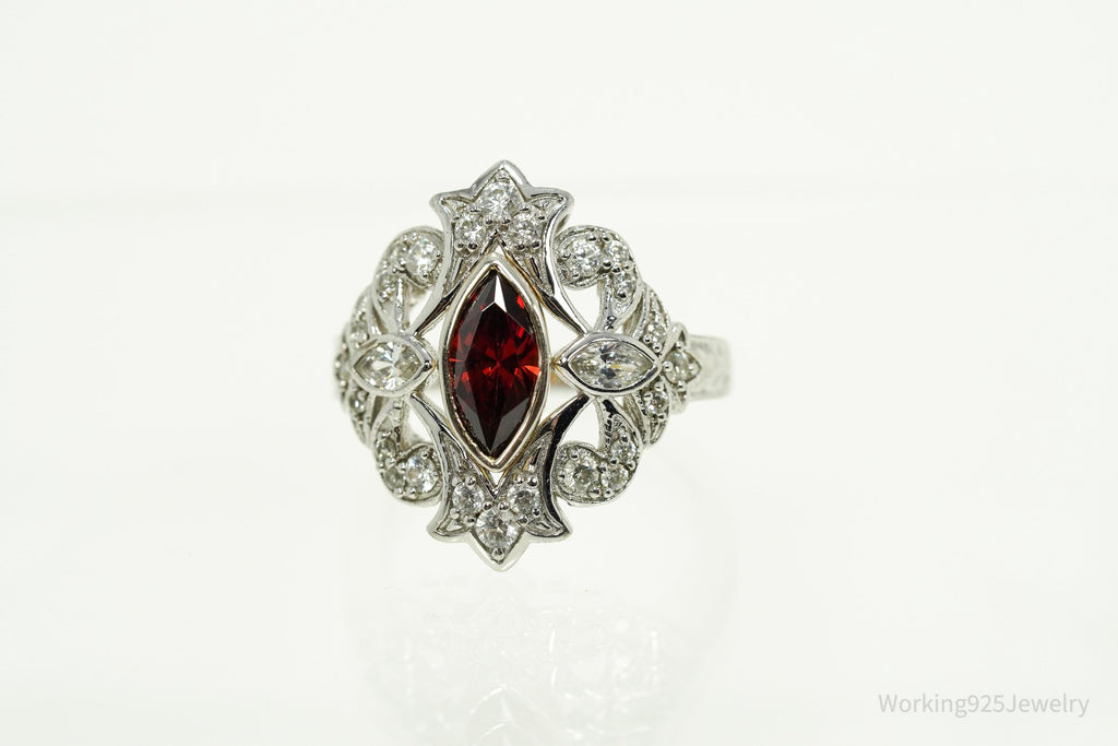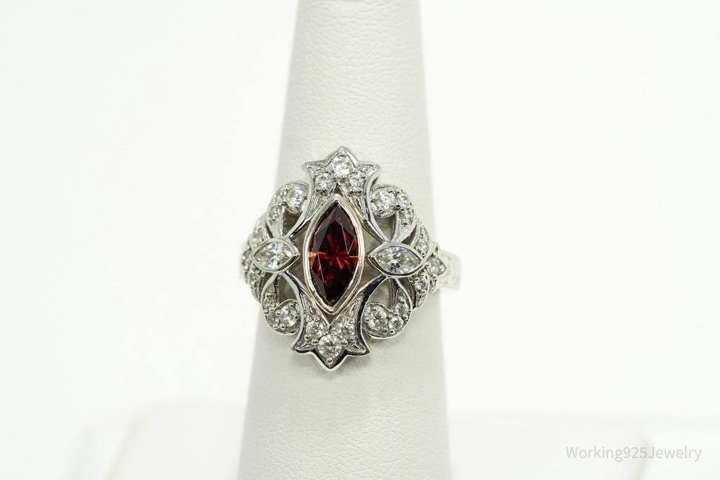 Vintage Garnet & White Zircon Sterling Silver Ring - Size 7
