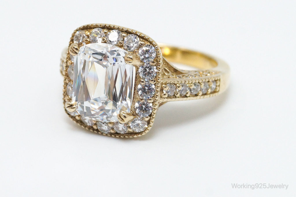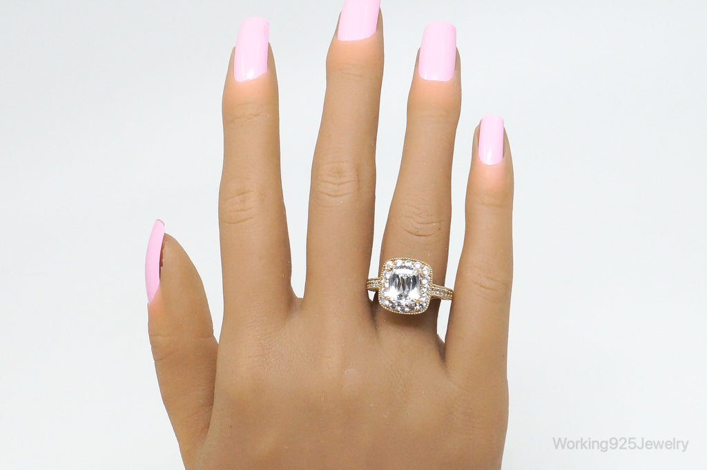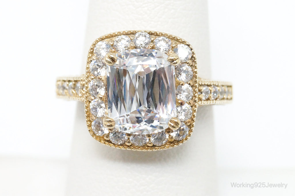 Vintage Gold Vermeil Cubic Zirconia Sterling Silver Ring - Size 7