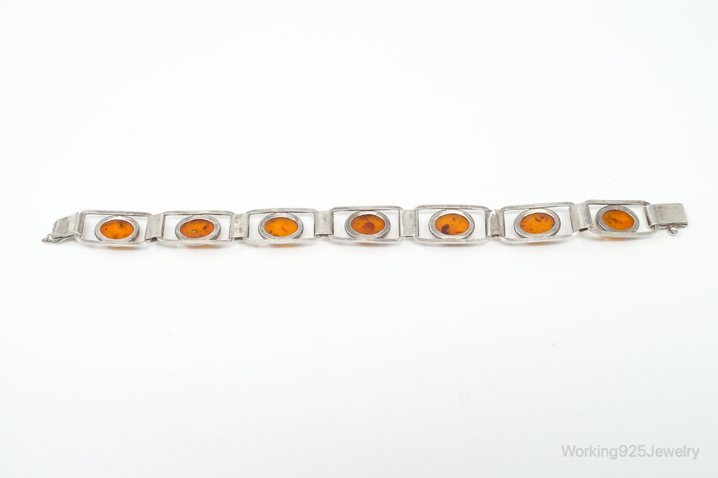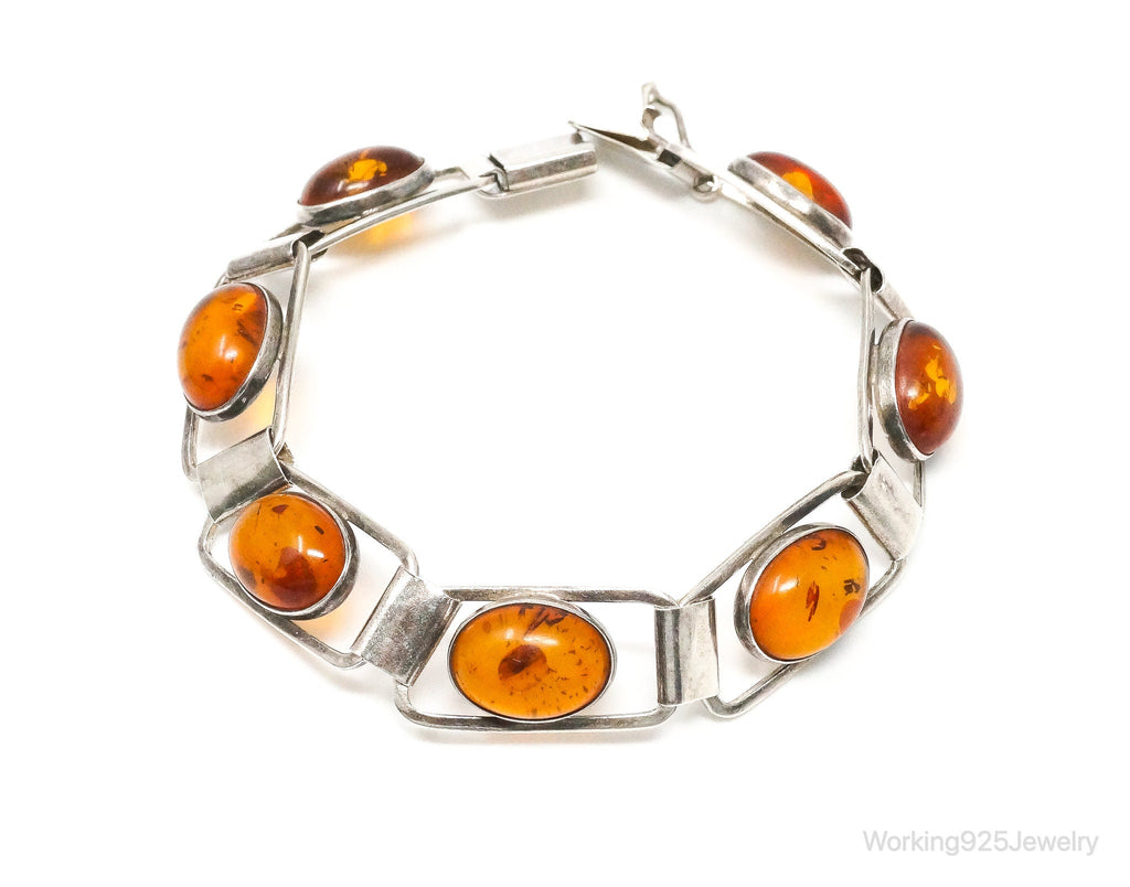 Vintage Graciana Baltic Amber Modernist Sterling Silver Bracelet
