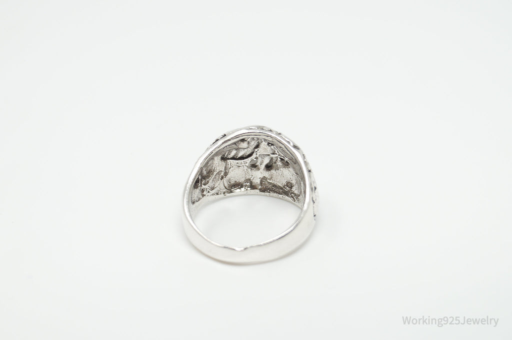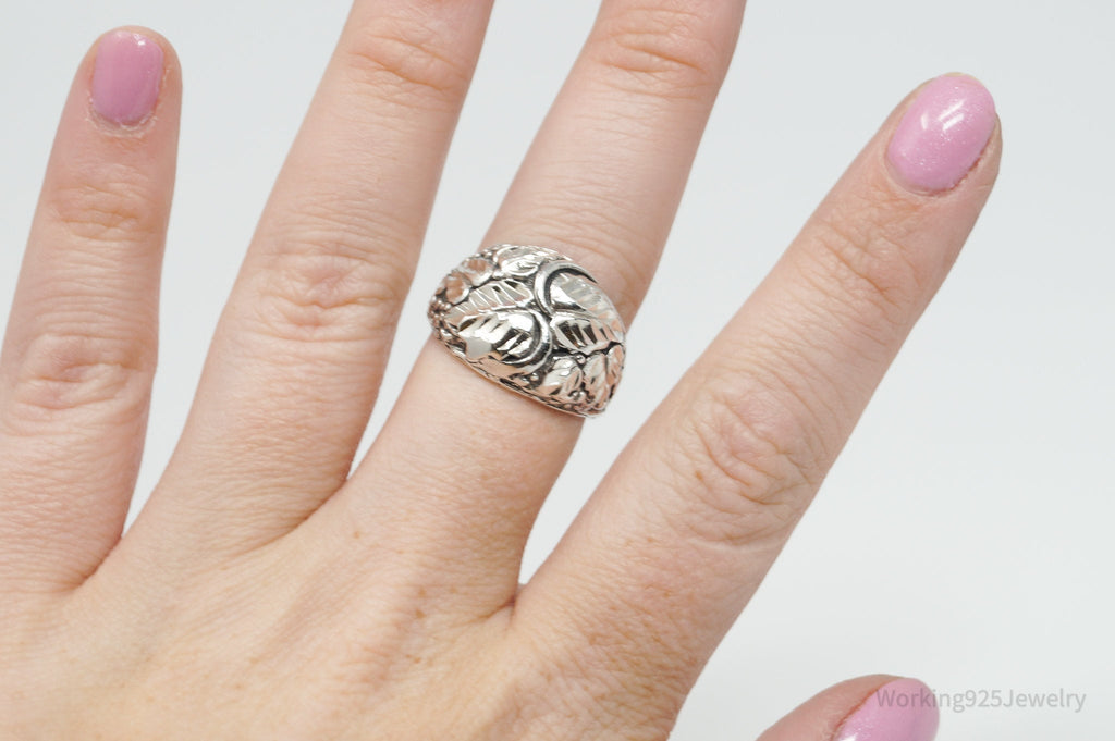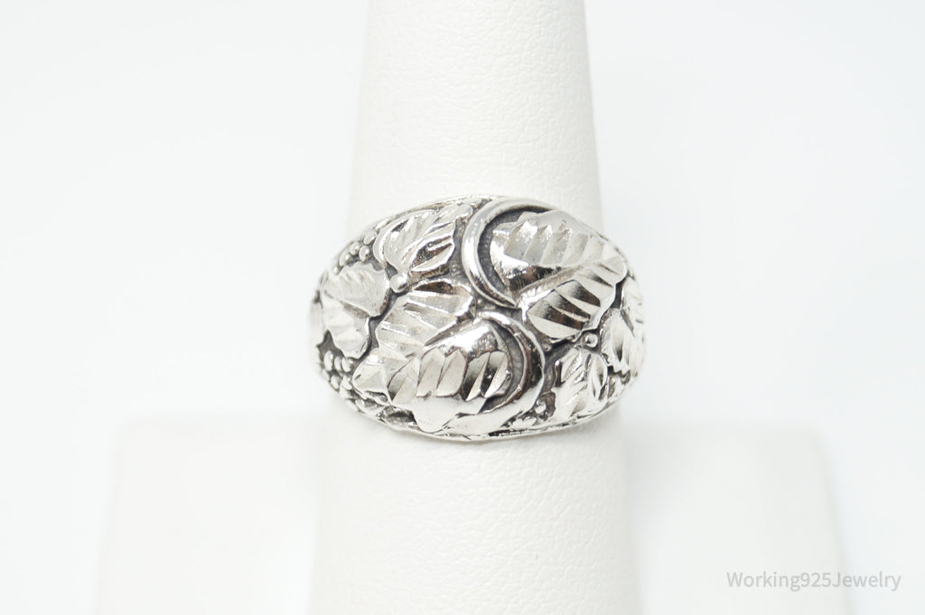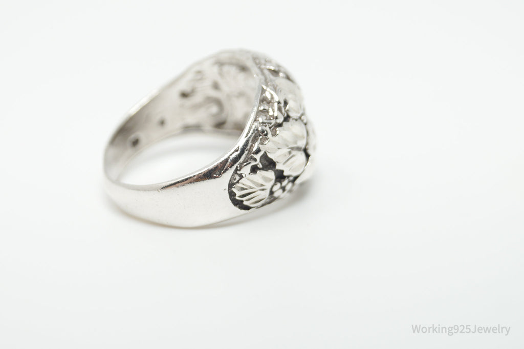 Vintage Grape Vine Leaf Sterling Silver Band Ring - Size 8.25