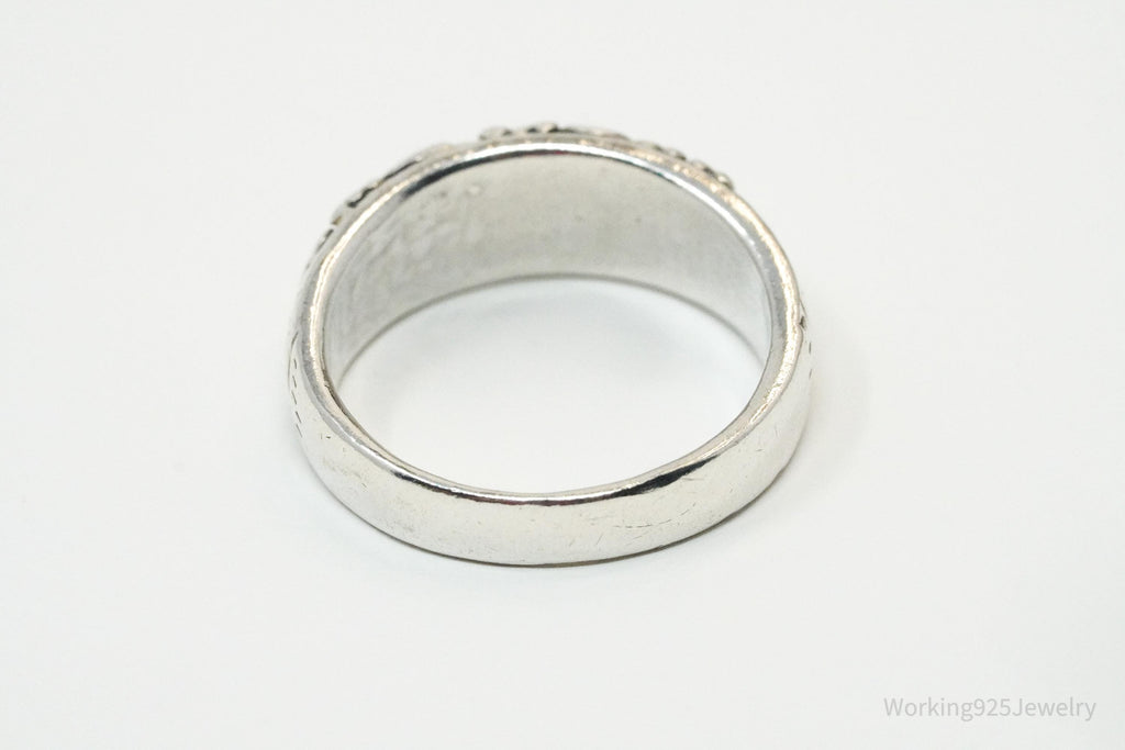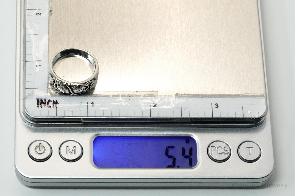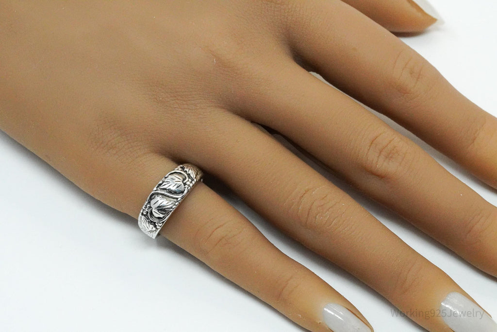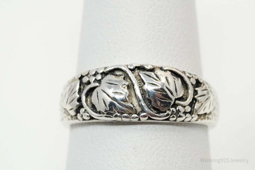 Vintage Grape Vine Leaves Sterling Silver Band Ring - Size 6.75