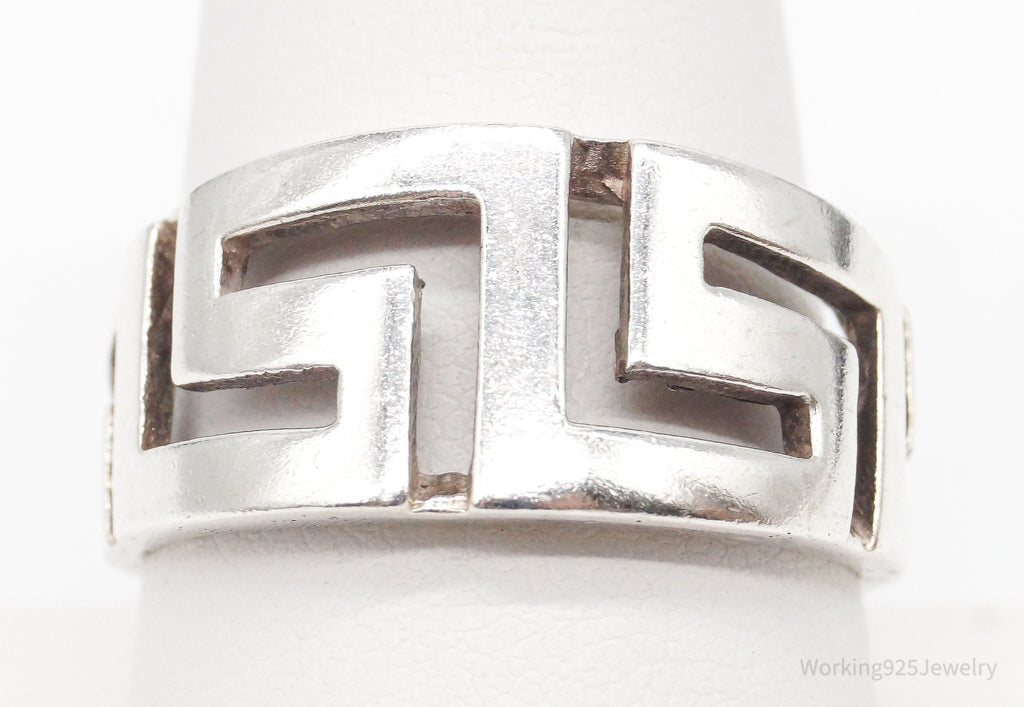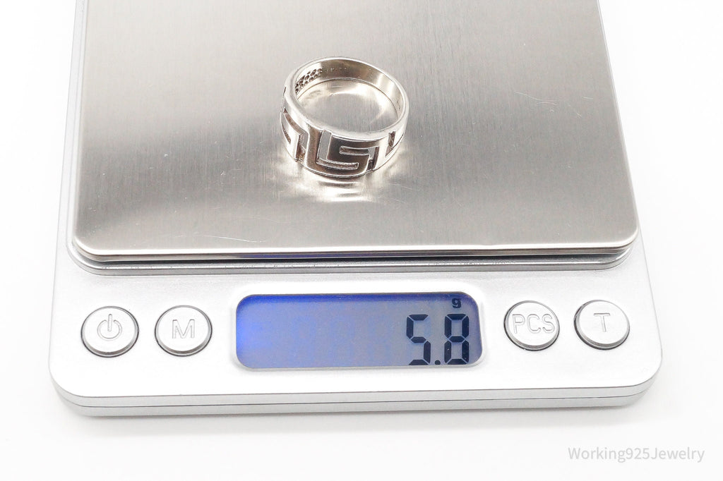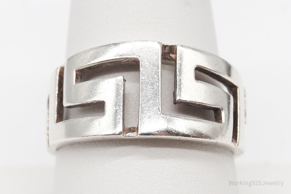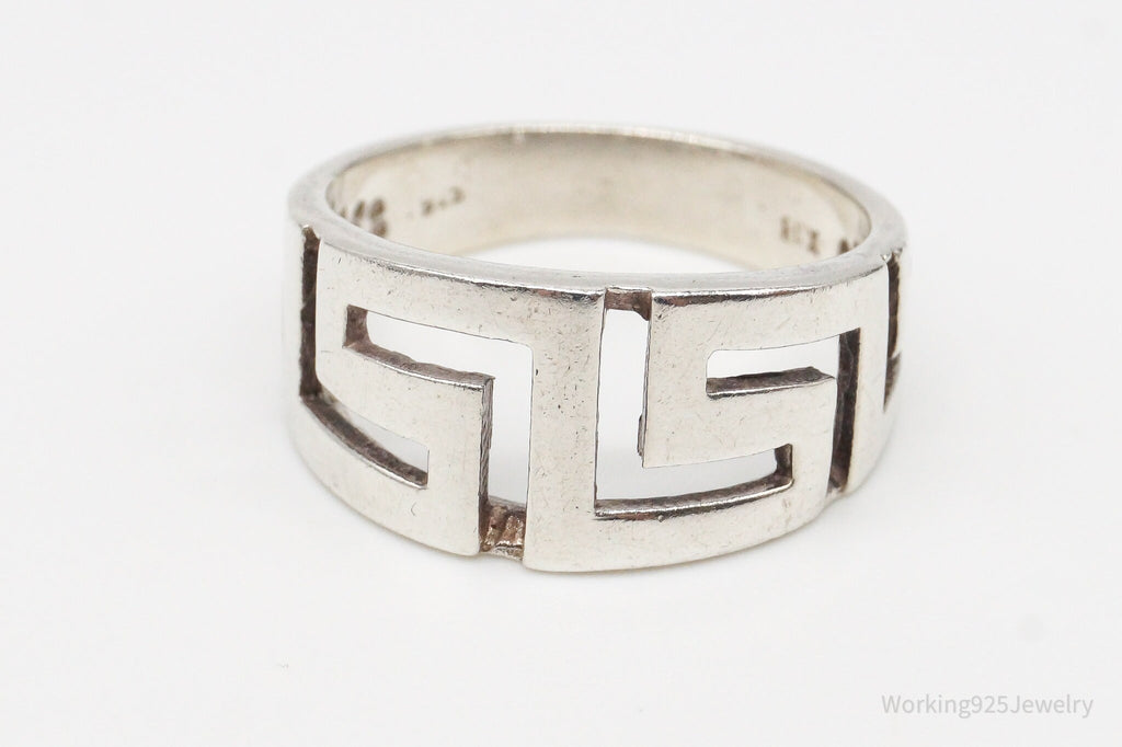 Vintage Greek Key Cut-Out Design Sterling Silver Band Ring - Size 9.75
