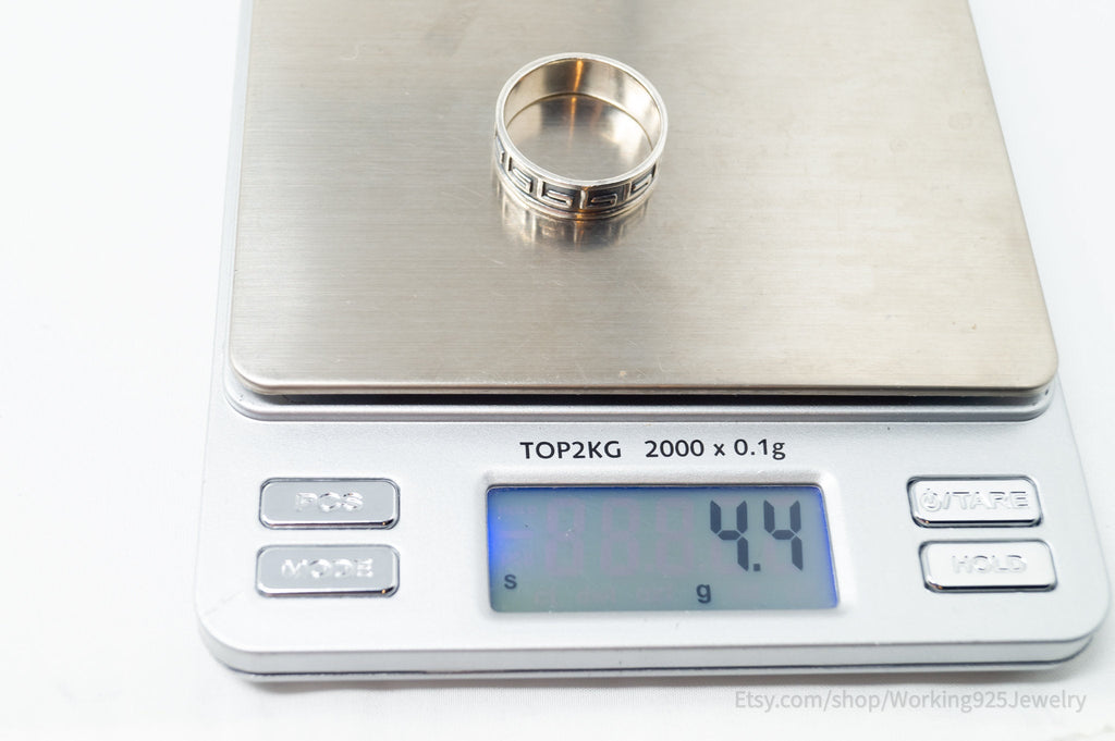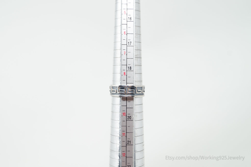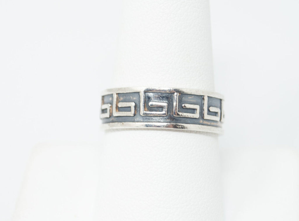 Vintage Greek Key Design Oxidized Sterling Silver Band Ring - Sz 9