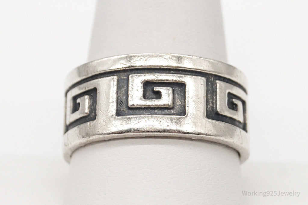 Vintage Greek Key Sterling Silver Band Ring - Size 11.25