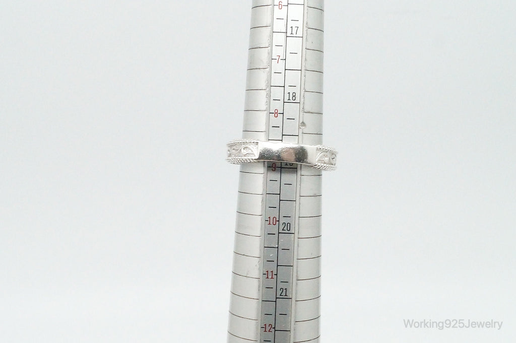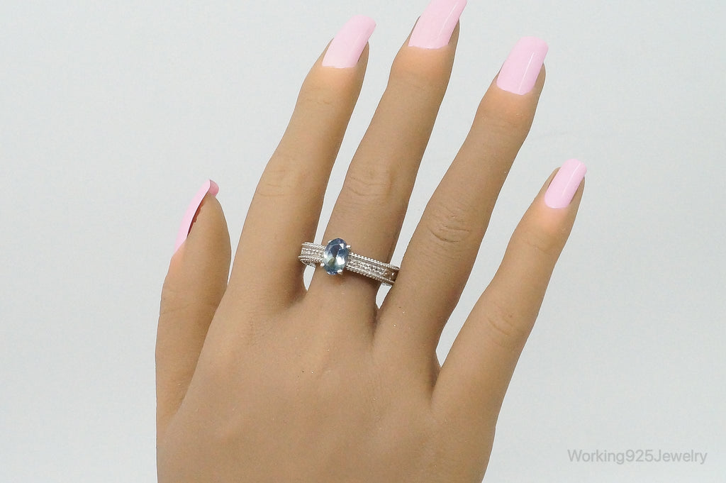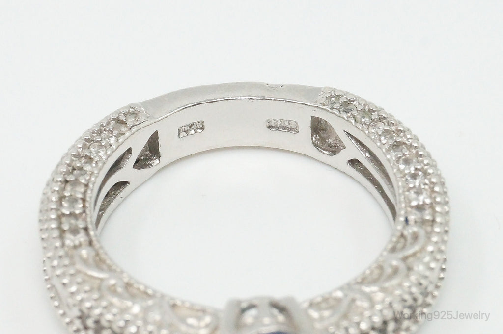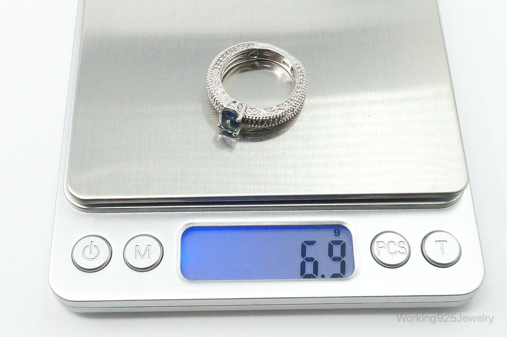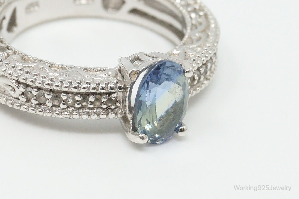 Vintage Green Blue Gemstone Cubic Zirconia Sterling Silver Ring - Size 8.75